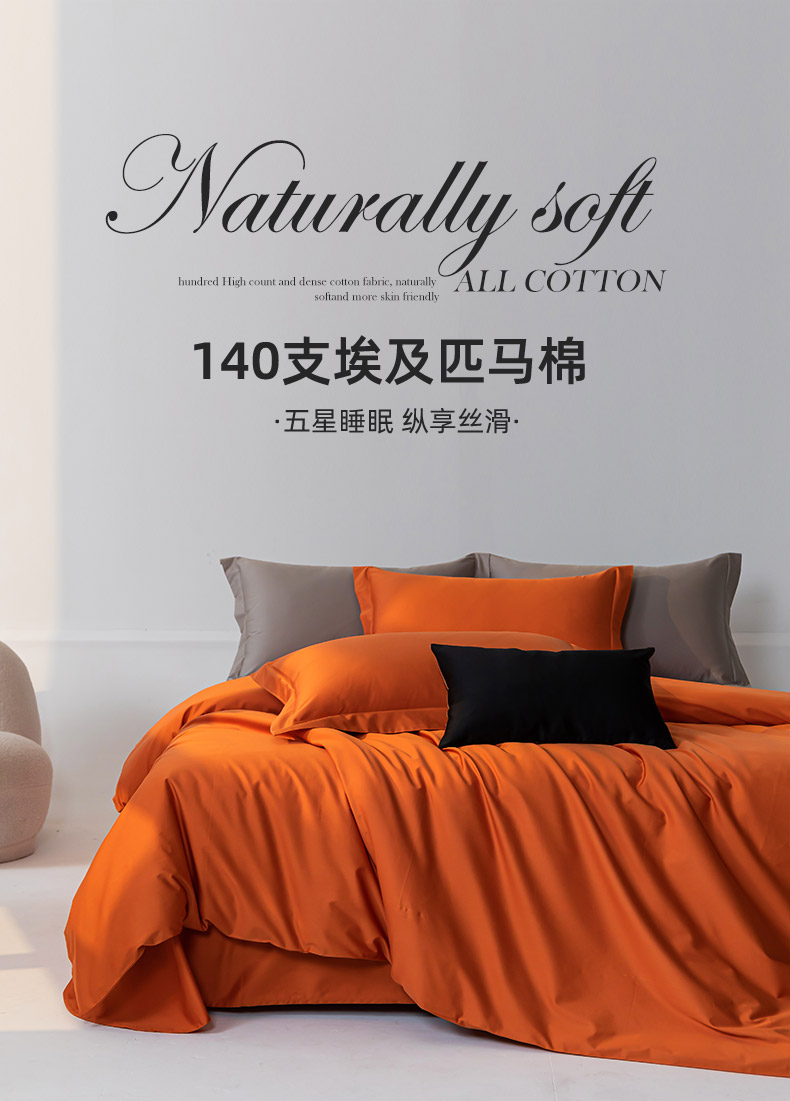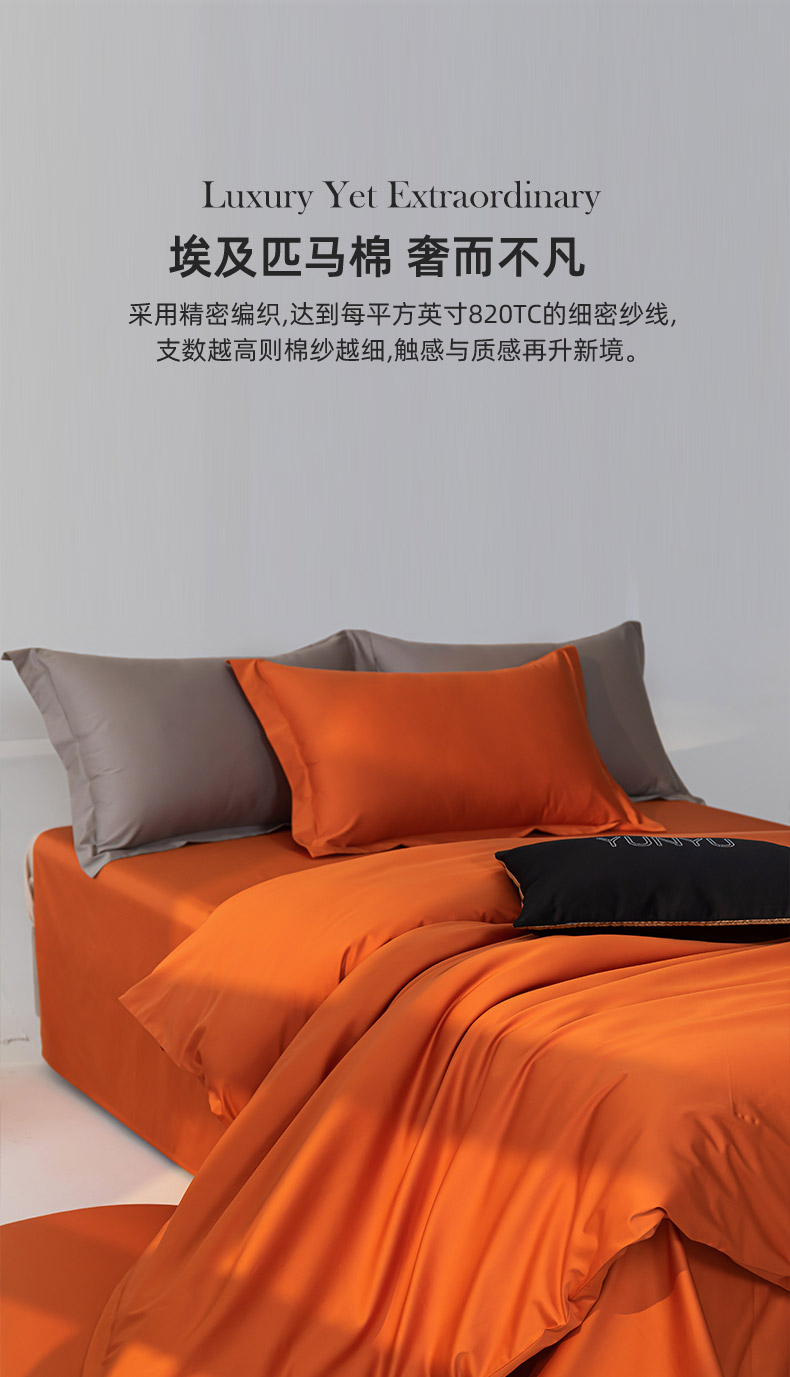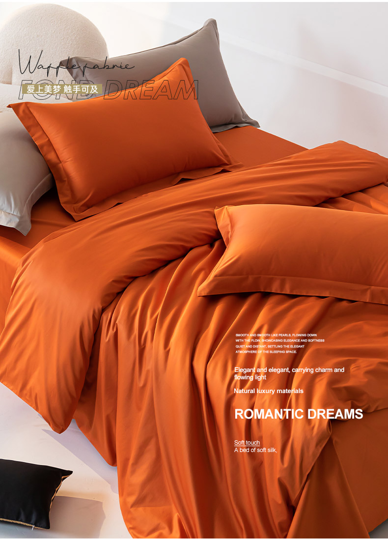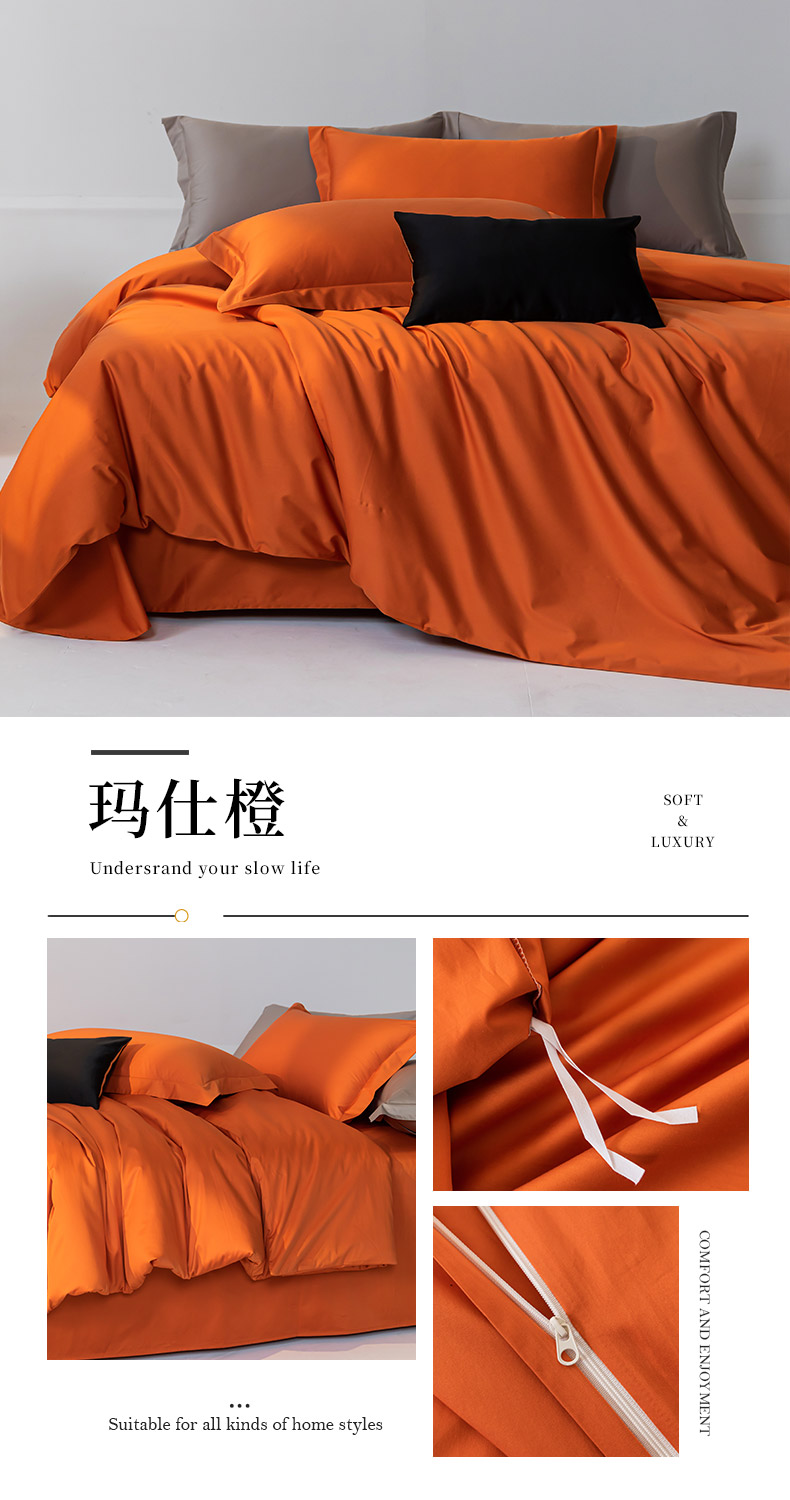 商品名称:轩和 2024新款70支埃及匹马棉纯色四件套床笠床单款5个尺寸不断货 玛仕橙