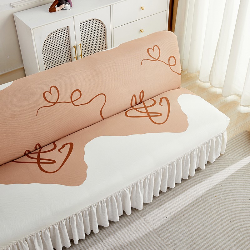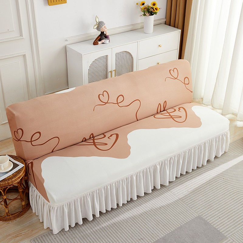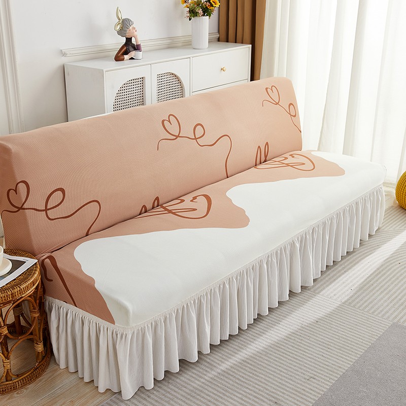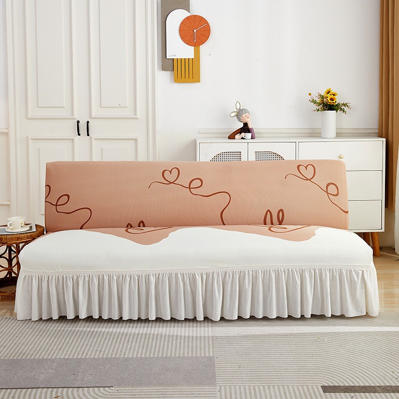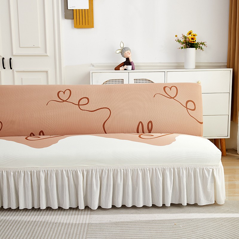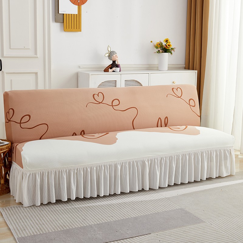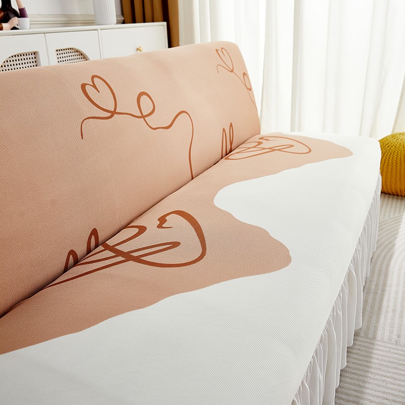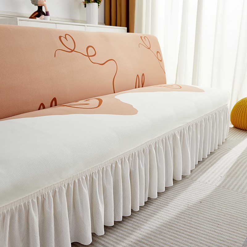 丝绮鹿 2023新款针织柔肤格沙发床套裙边款 简爱-杏色