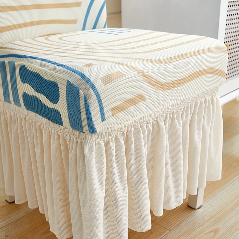 当前位置: 91家纺网 > 商品网购 > 居家布艺 > 坐垫/椅垫/沙发垫 > 椅垫 > 丝绮鹿 2023新款针织柔肤格椅子套裙边款 几何-蓝