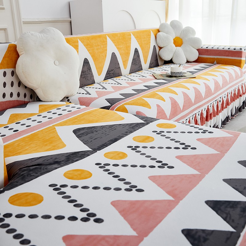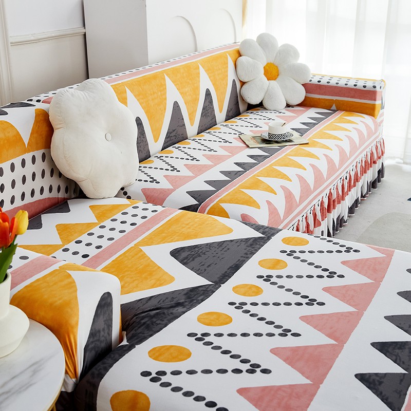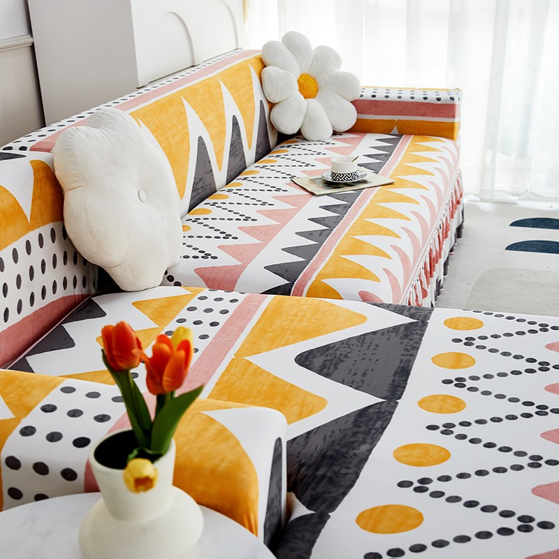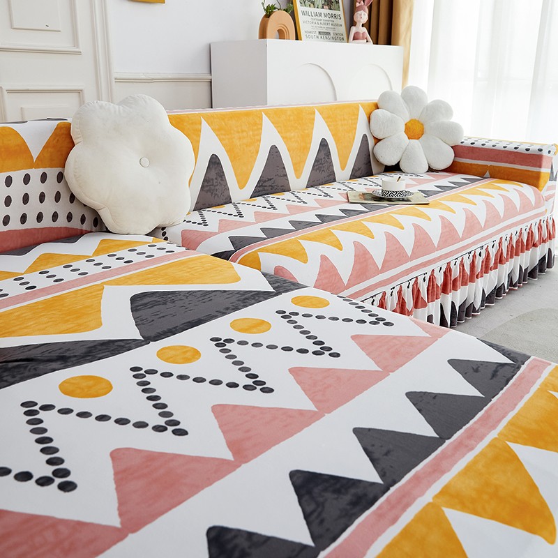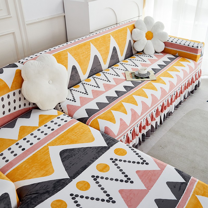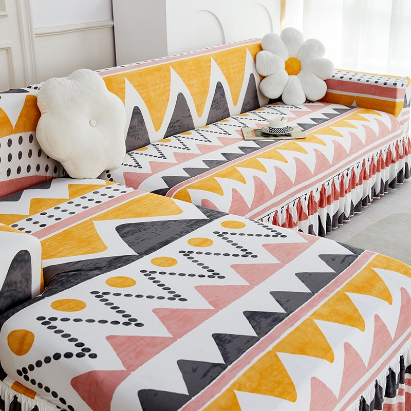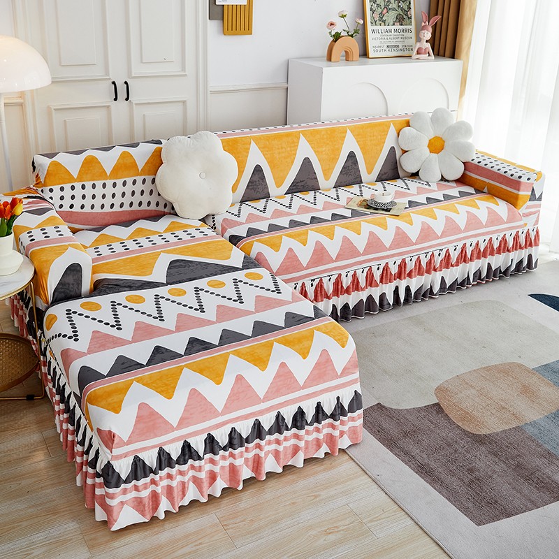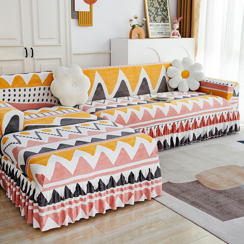 丝绮鹿 2023新款牛奶丝沙发套贵妃图(裙边款) 米亚