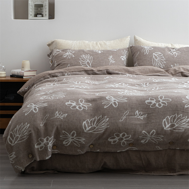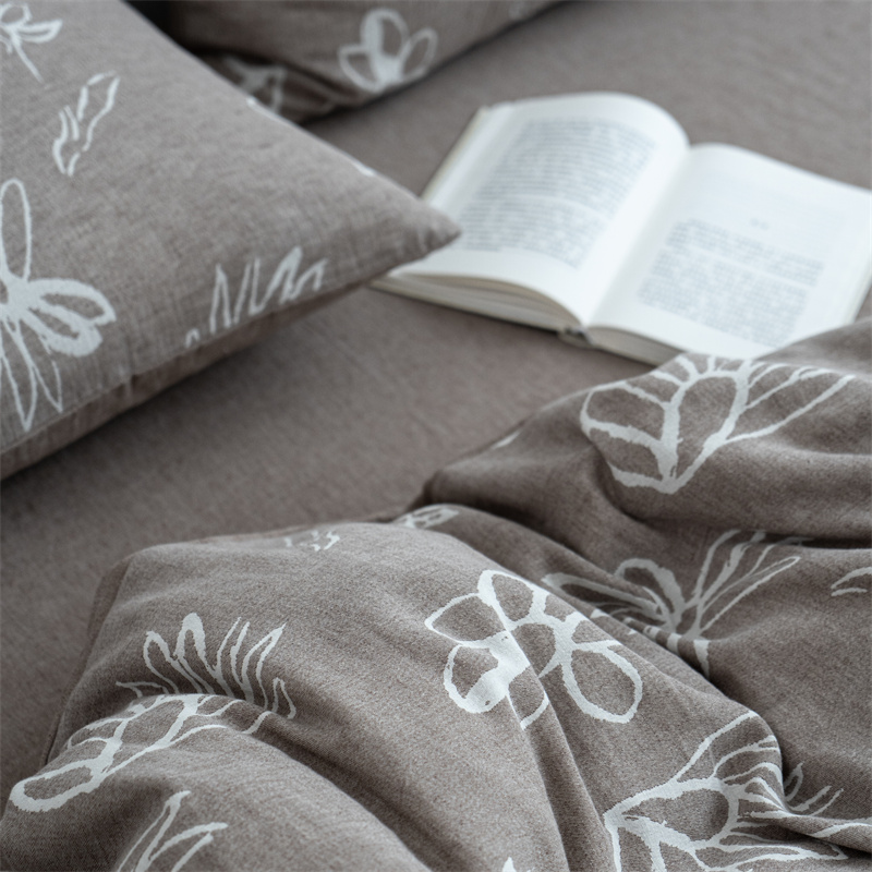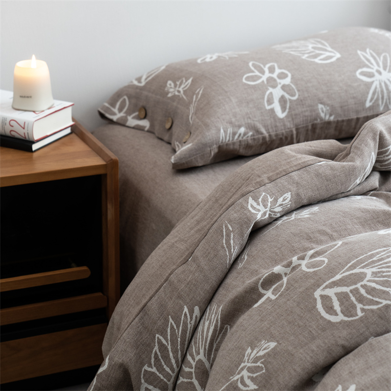 (总)子和家居 2025新款全棉麻感棉花朵款四件套-场景1,麻感棉花朵款四件套