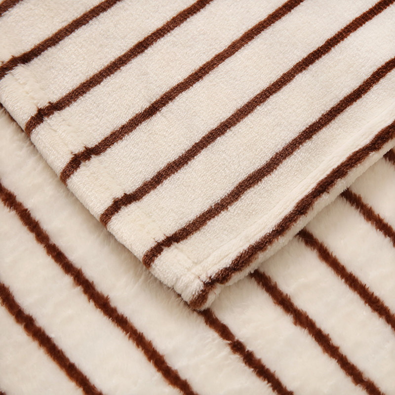 新丽佳家纺 2023新款亲肤舒适法莱绒条纹毛毯 棕条纹