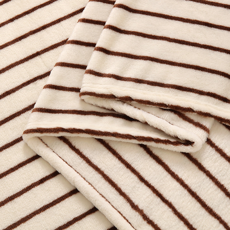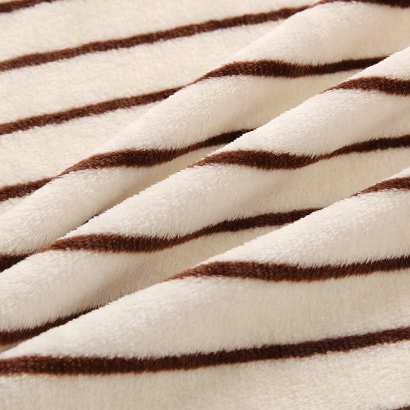 商品名称:新丽佳家纺 2023新款亲肤舒适法莱绒条纹毛毯 棕条纹