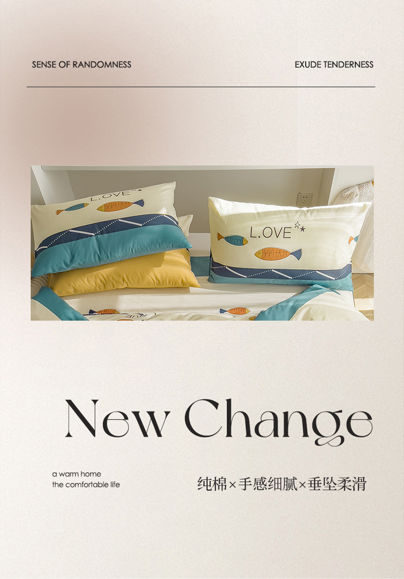 当前位置: 91家纺网 > 商品网购 > 床品套件 > 四件套 > 全棉普通四件套 > 首爱家纺 2025新款纯棉斜纹印花四件套 鱼之恋