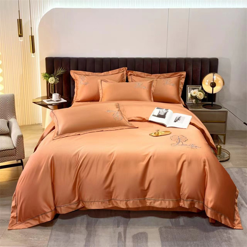 (总)玖玖爱家纺 2023新款120支贡缎长绒棉刺绣梦柔系列四件套,梦柔-香槟金,梦柔-香橙桔,梦柔-高级灰,梦柔-水蓝,梦柔-芙蓉玉