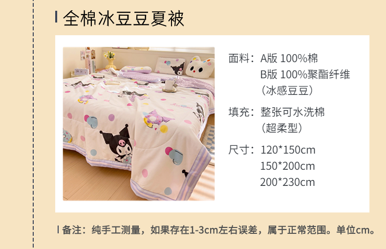 商品名称:十九色 2025新款酷洛米系列全尺寸全棉13372凉豆豆夏被 波点酷洛米