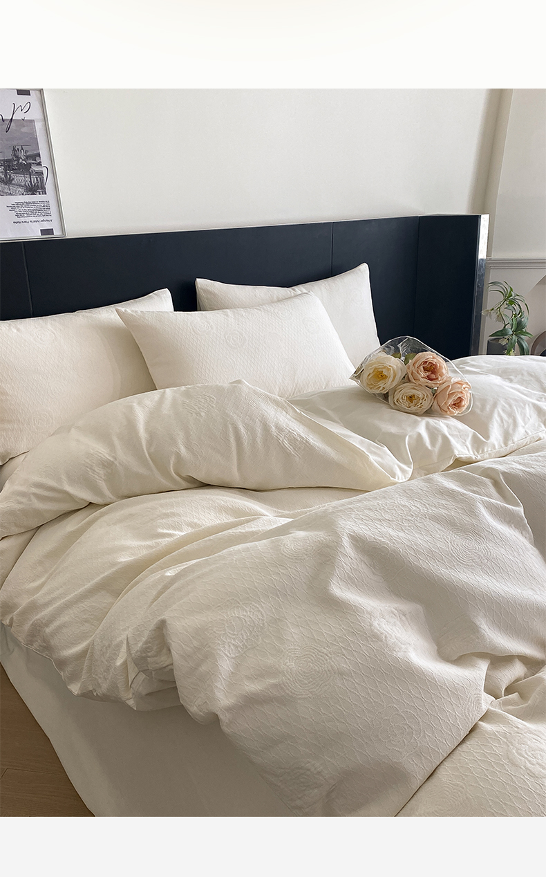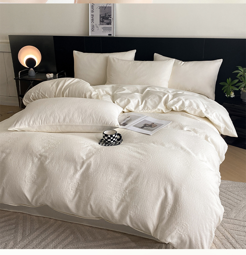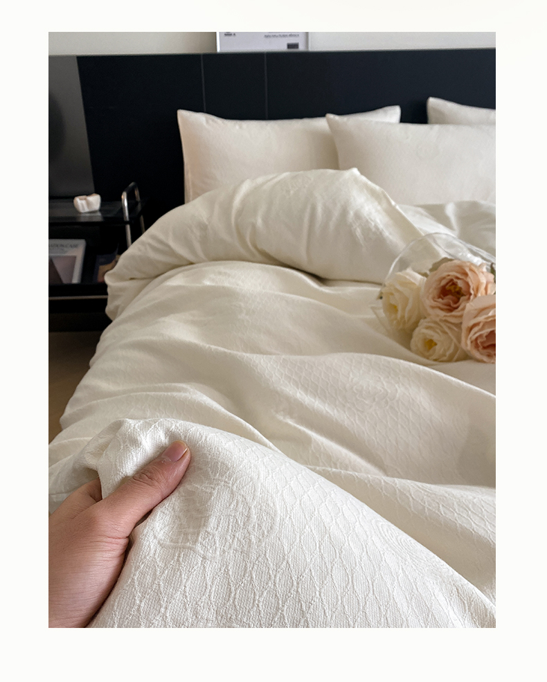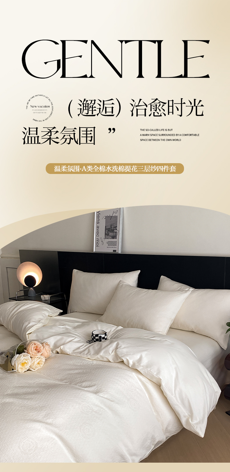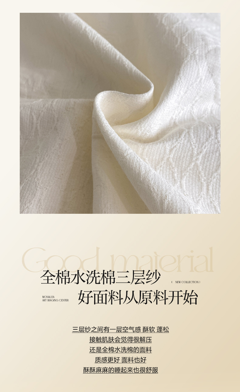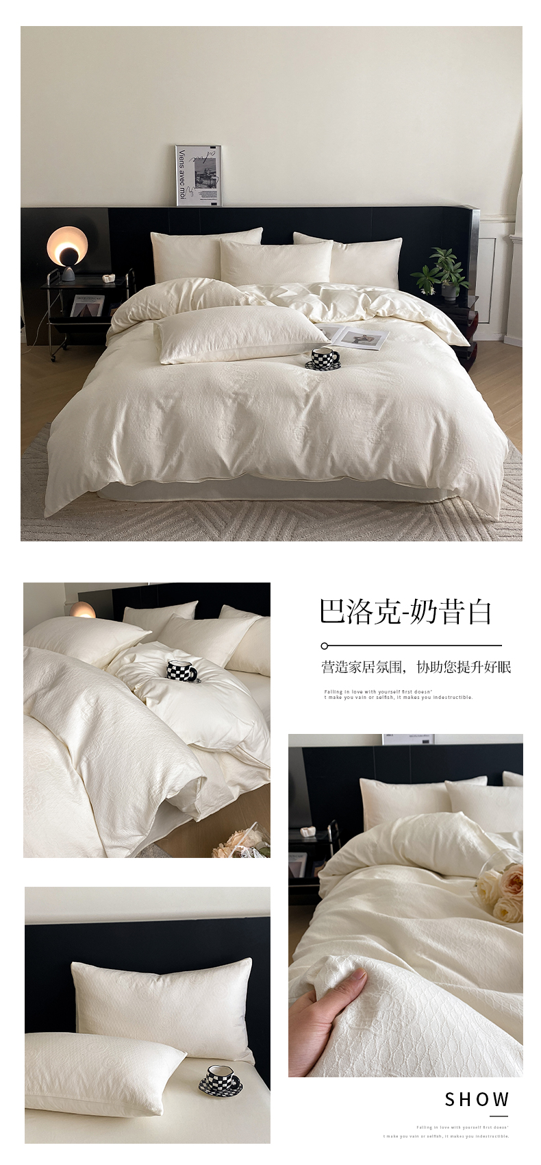 当前位置: 91家纺网 > 商品网购 > 床品套件 > 四件套 > 全棉普通四件套 > 莱登卡奴 2024新款全棉A类水洗棉提花三层纱四件套 巴洛克-奶昔白