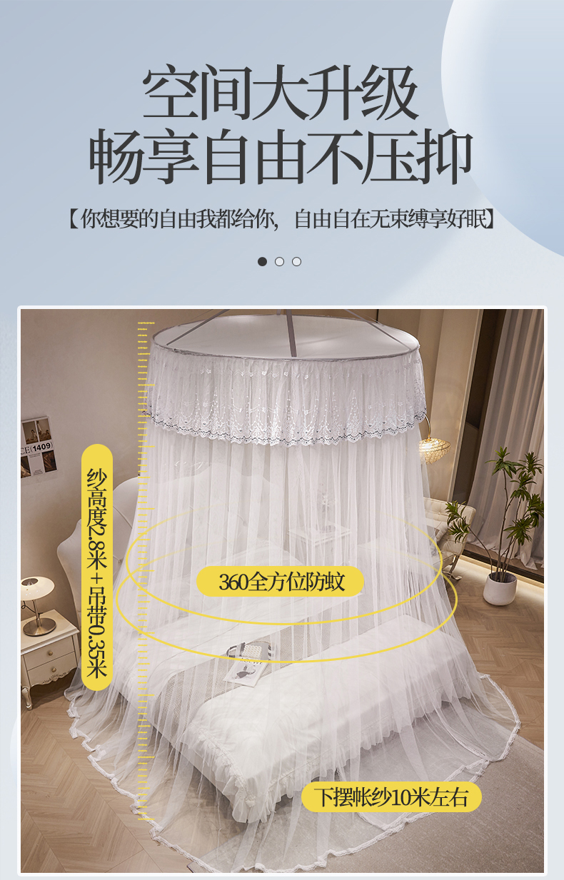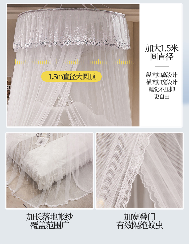 商品名称:(总)夏彩 2024新款1.5米直径蕾丝大圆吊顶蚊帐-88601