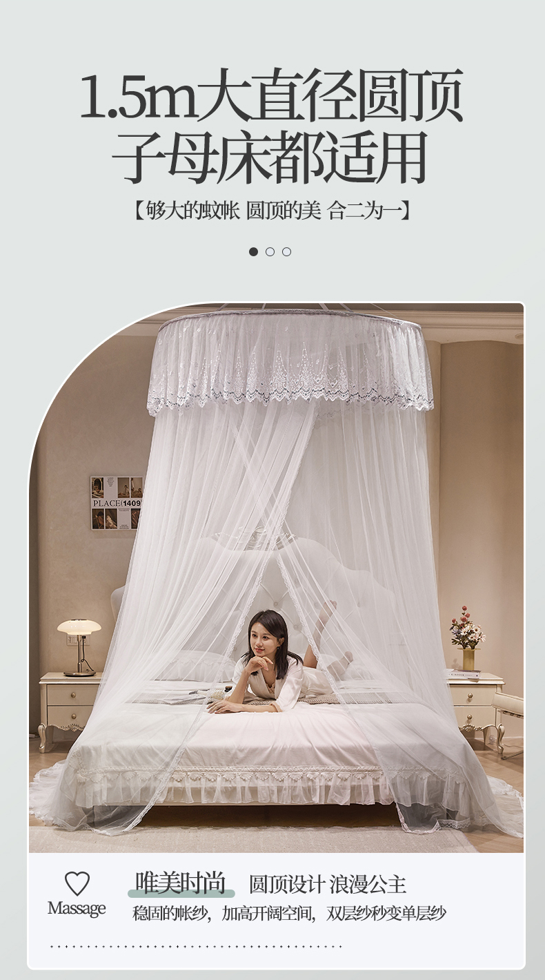 (总)夏彩 2024新款1.5米直径蕾丝大圆吊顶蚊帐-88601