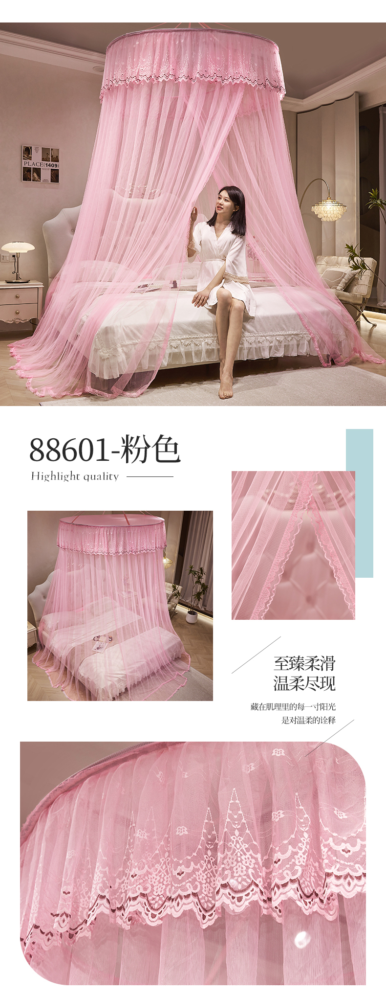 (总)夏彩 2025新款豪华宫廷蕾丝睡帐-88599,88599-公主白,88599-公主粉,88599-公主玉,88599-蓝灰色