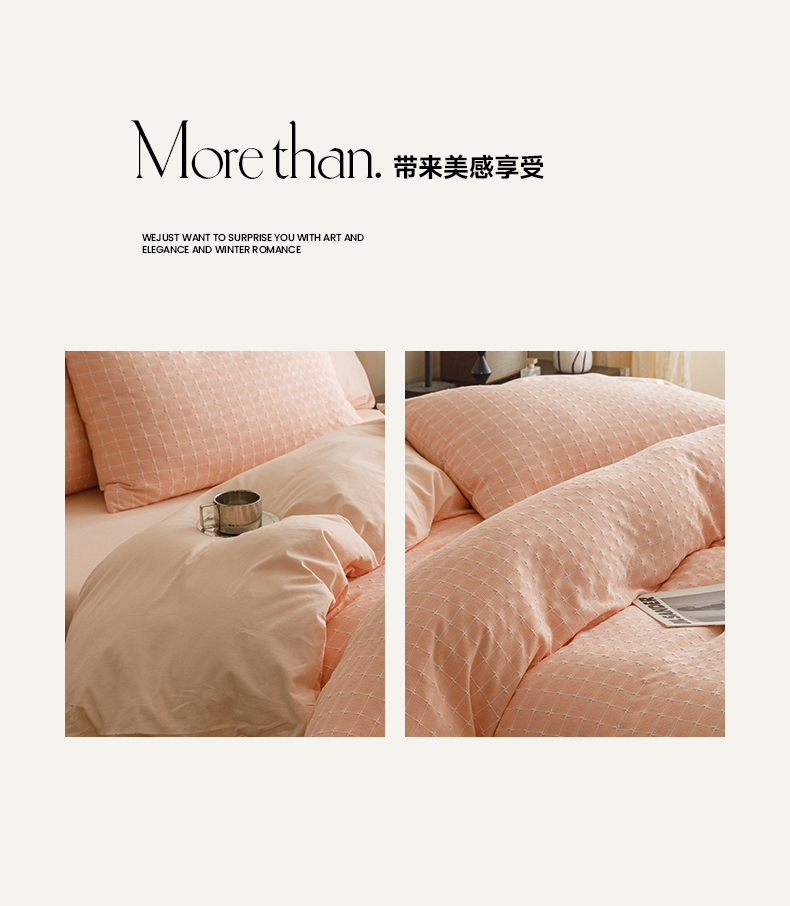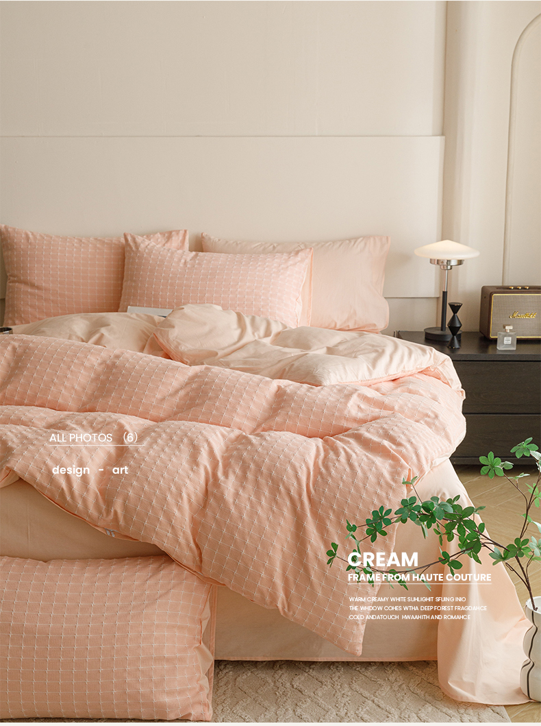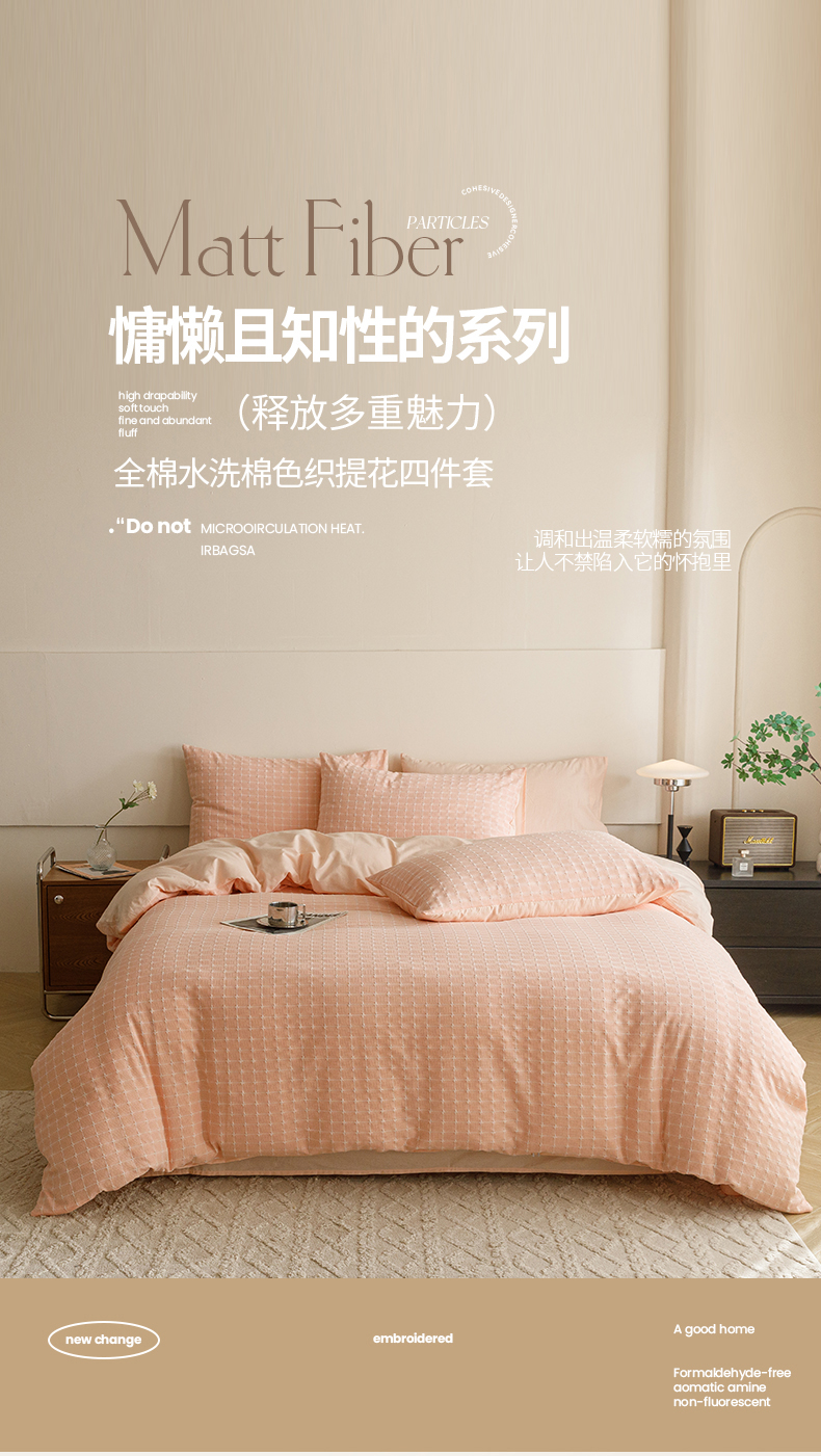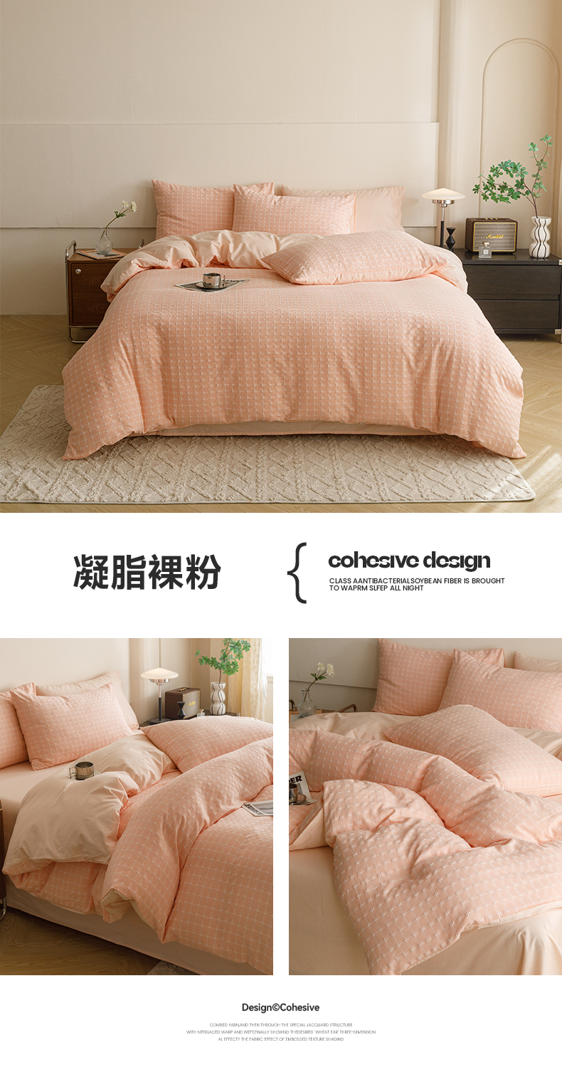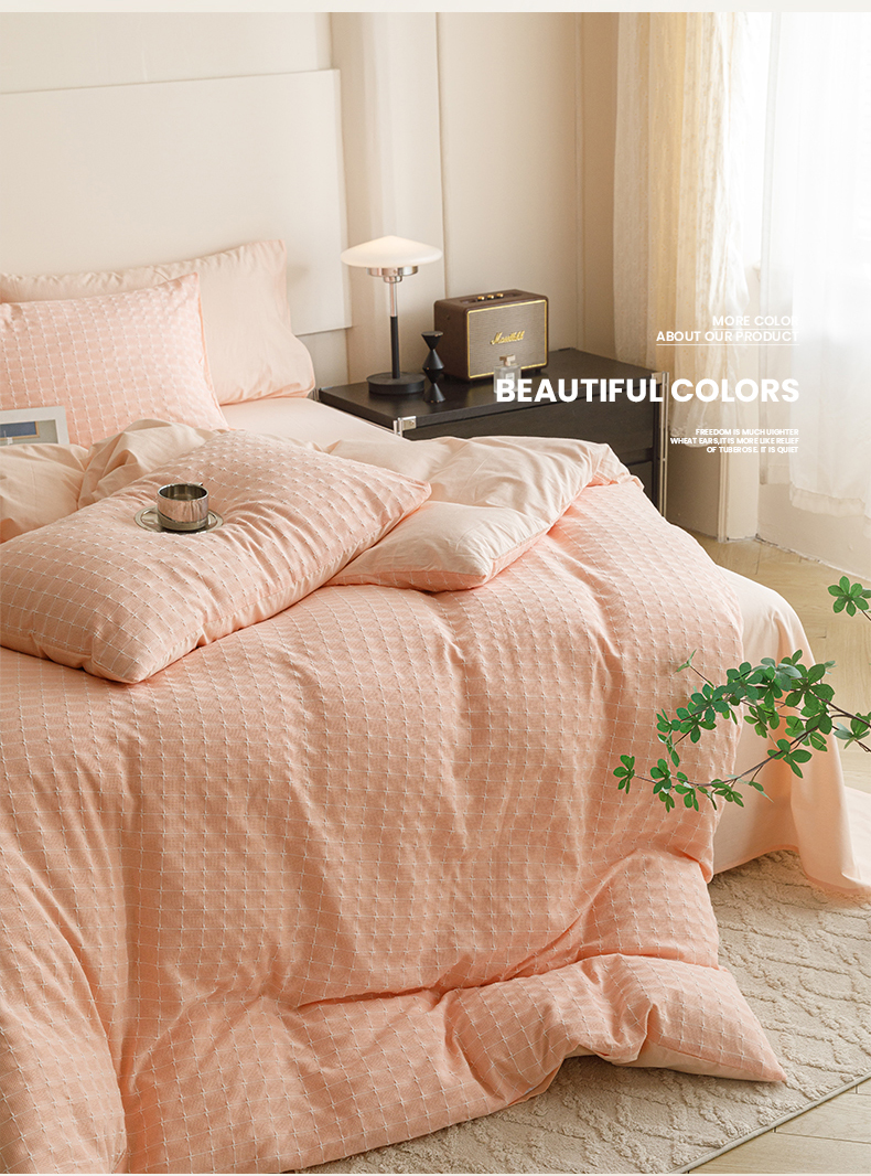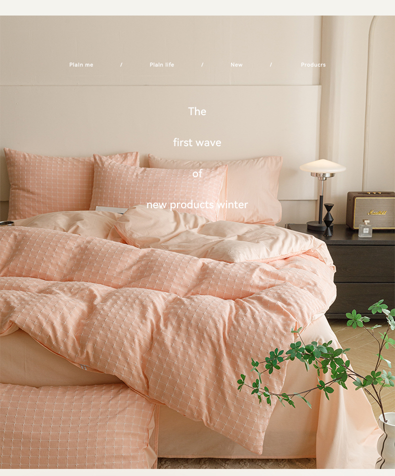 商品名称:蜜柚 2024新款全棉色织水洗提花四件套 凝脂裸粉