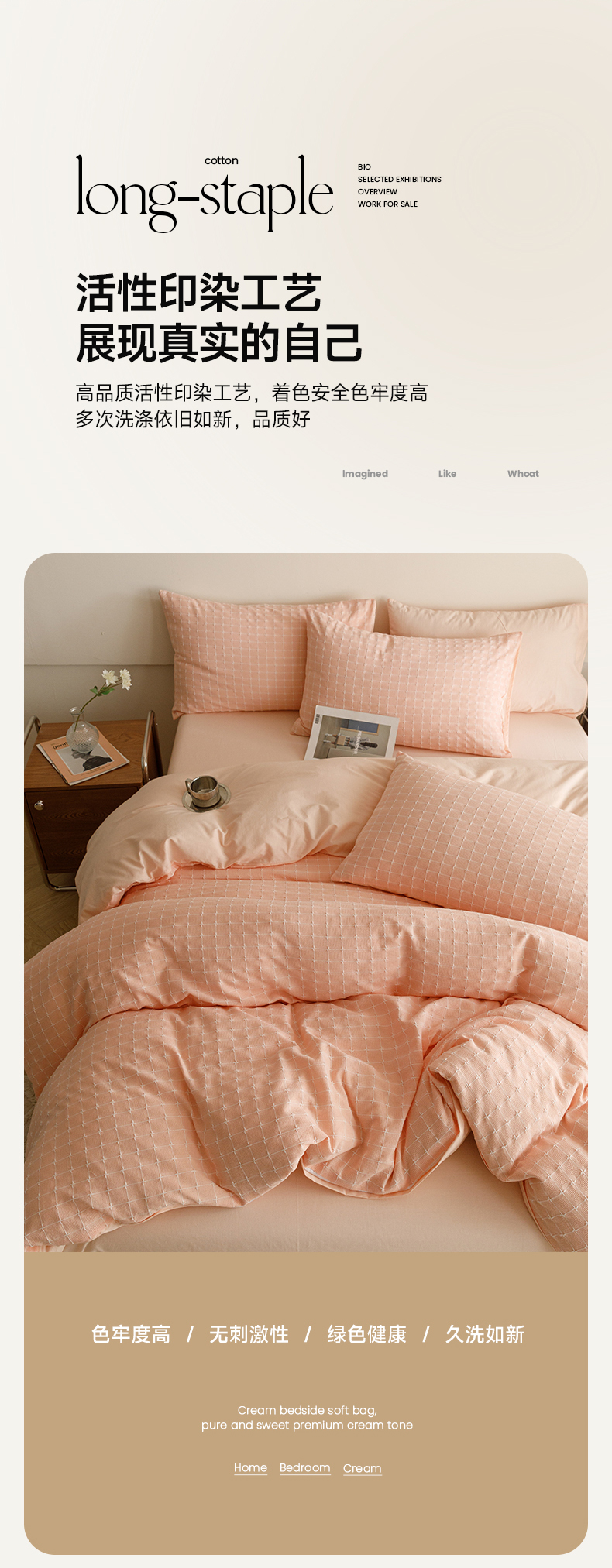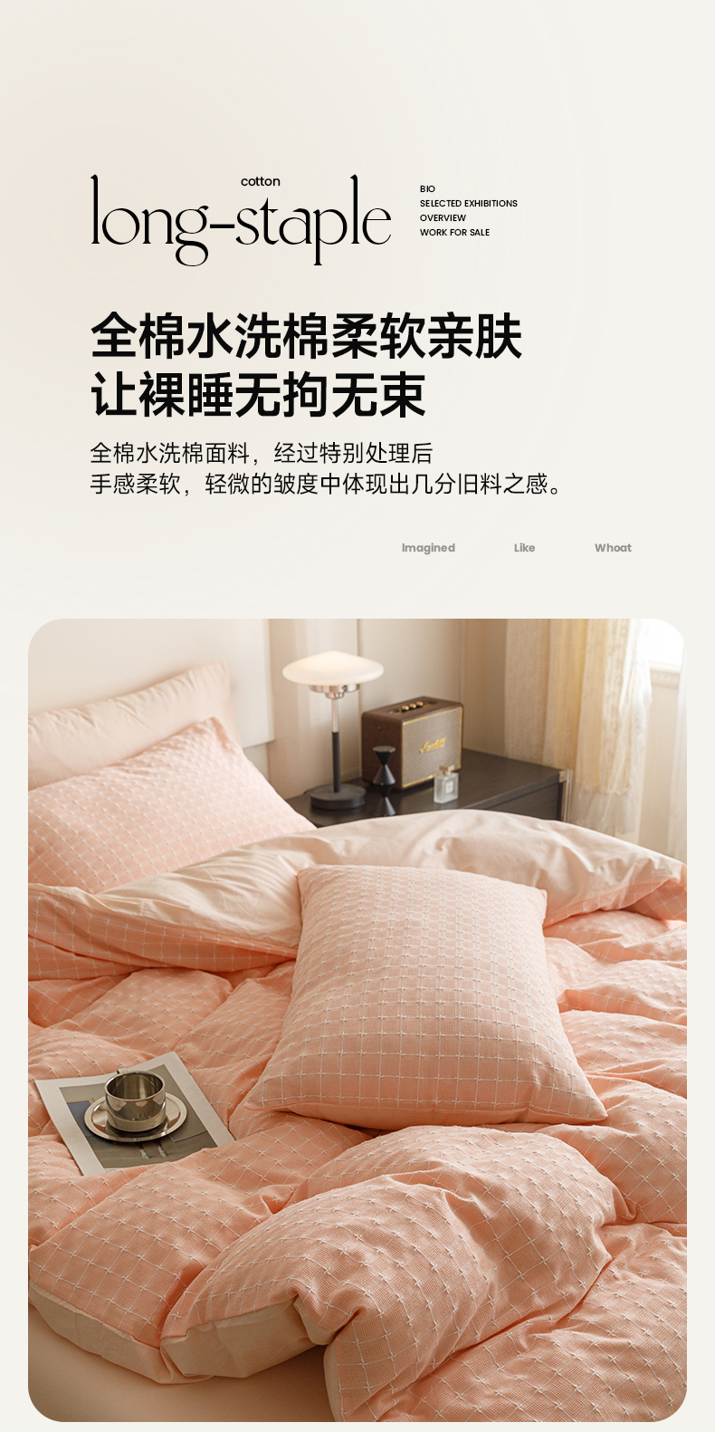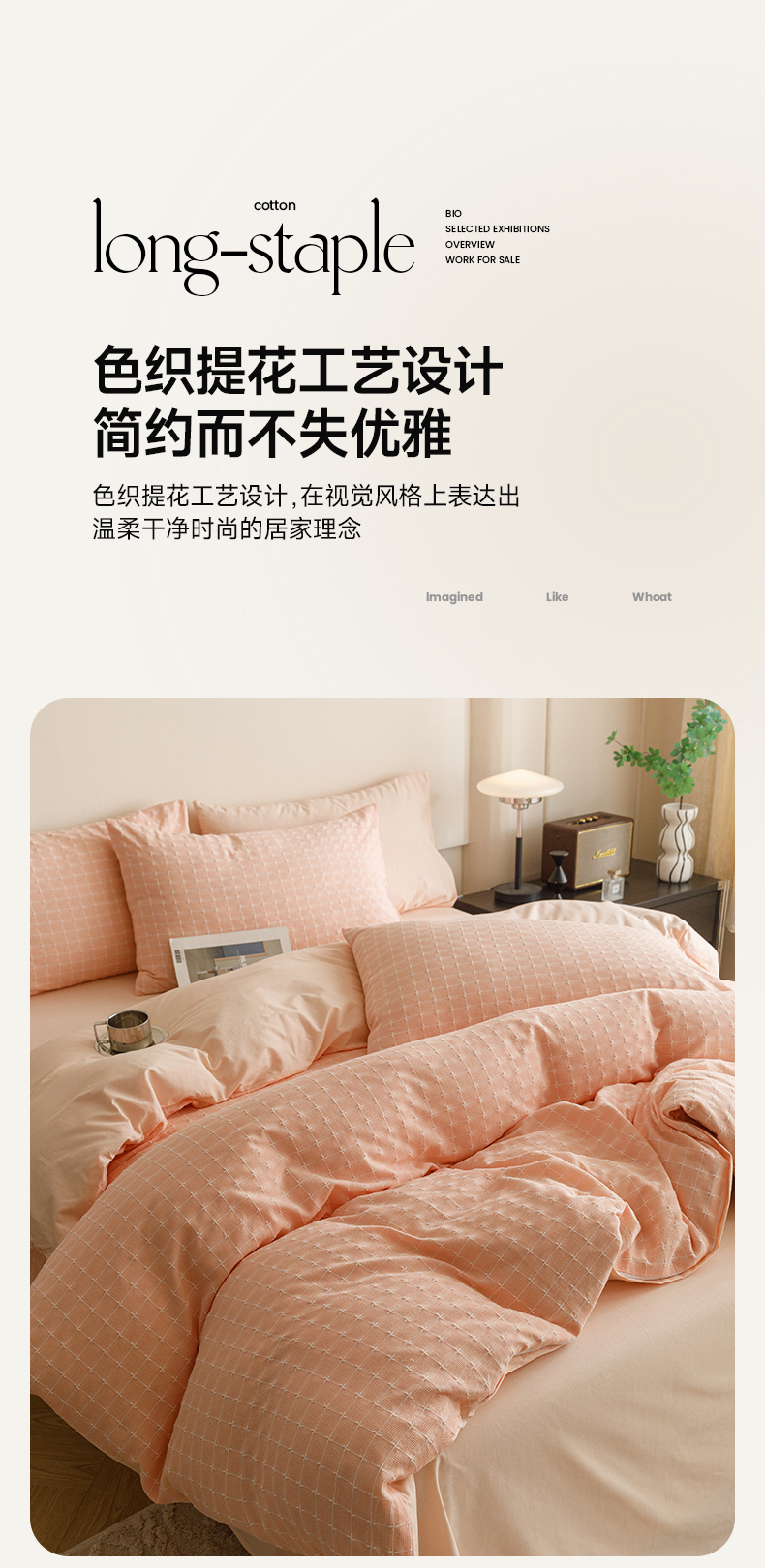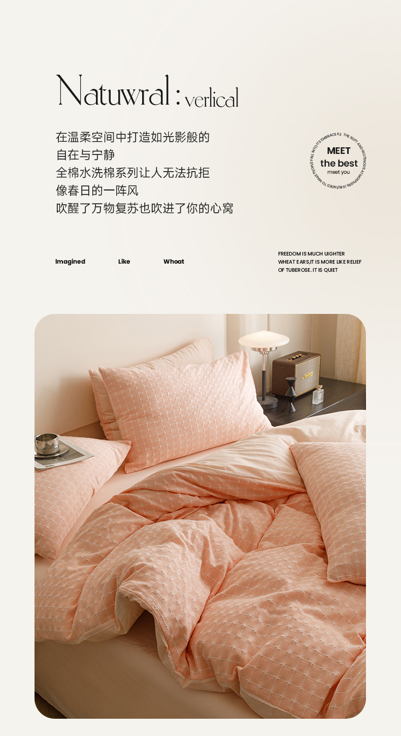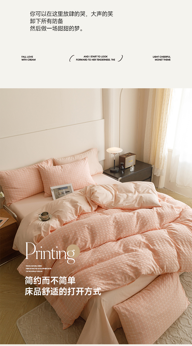 商品名称:蜜柚 2024新款全棉色织水洗提花四件套 凝脂裸粉