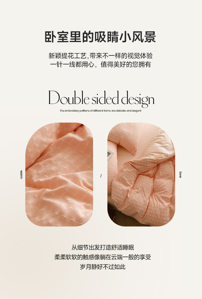 蜜柚 2024新款全棉色织水洗提花四件套 凝脂裸粉