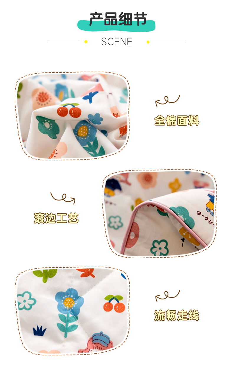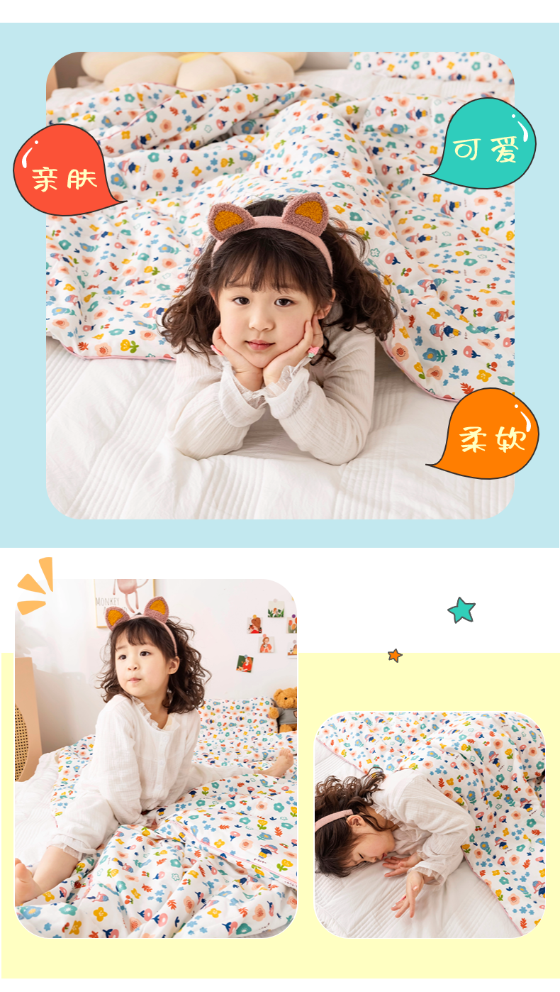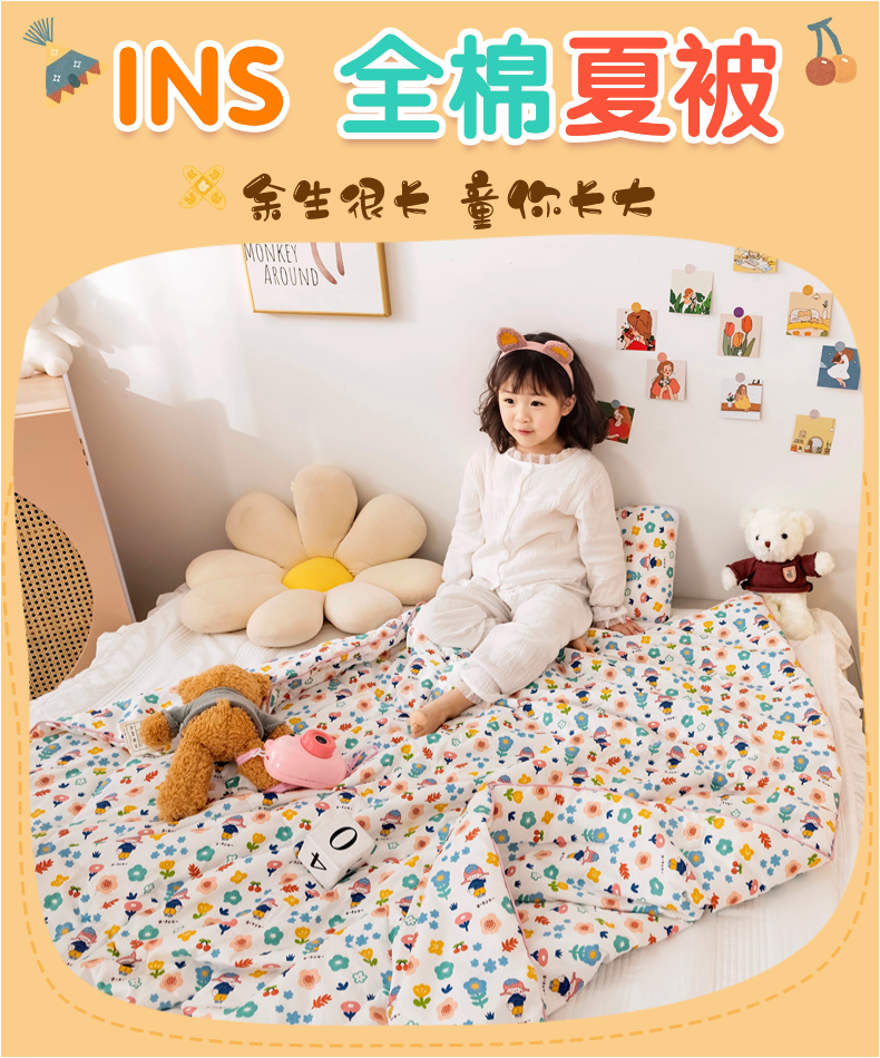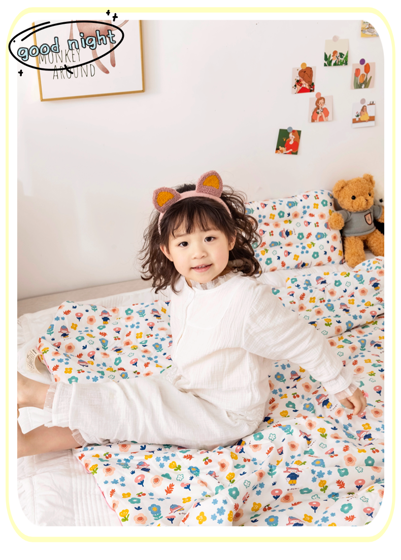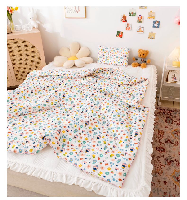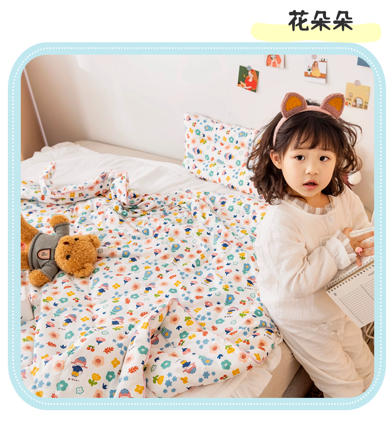 商品名称:十九色 2024新款全棉13372 ins儿童夏被 花朵朵