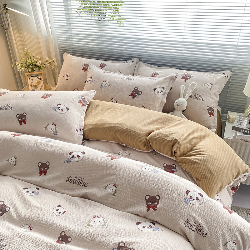 商品名称:寐时代 2024新款A类有氧提花水洗泡泡棉四件套 泡泡熊