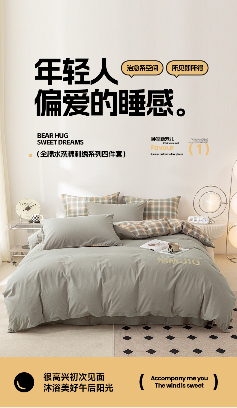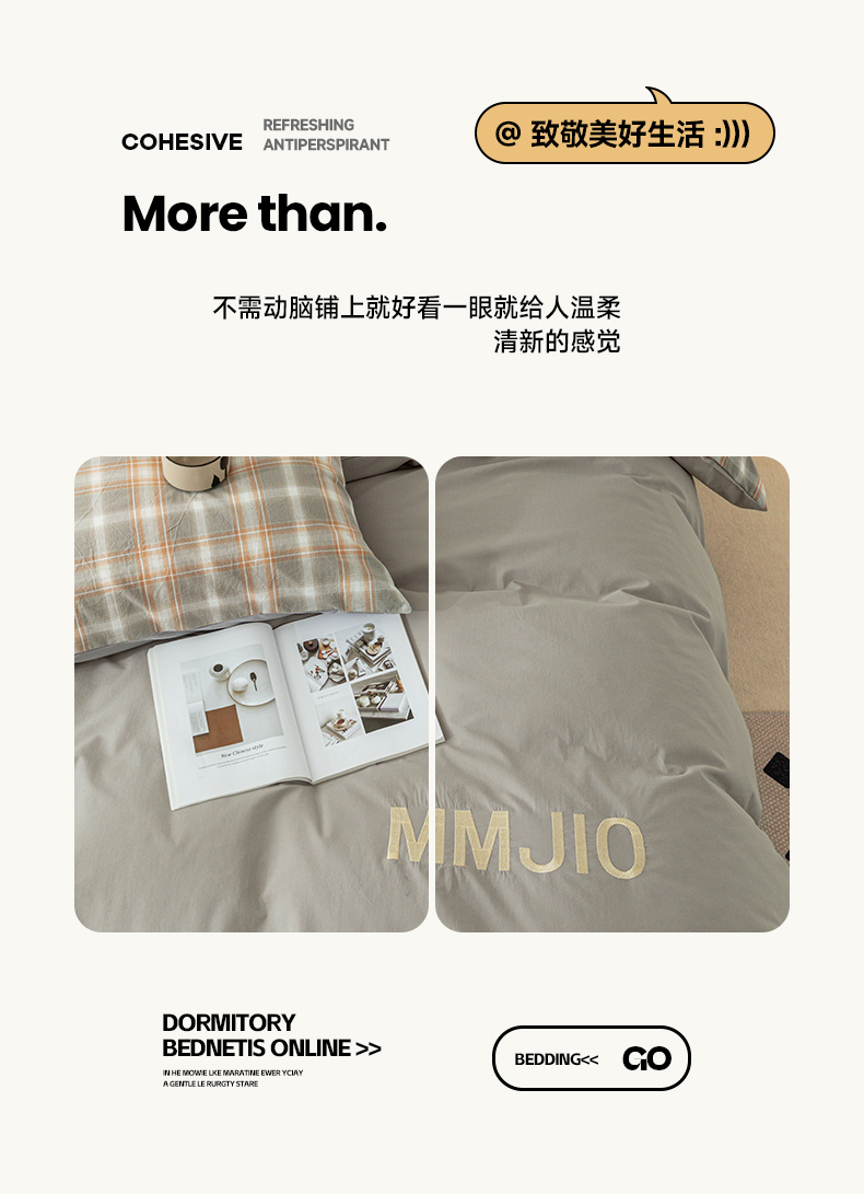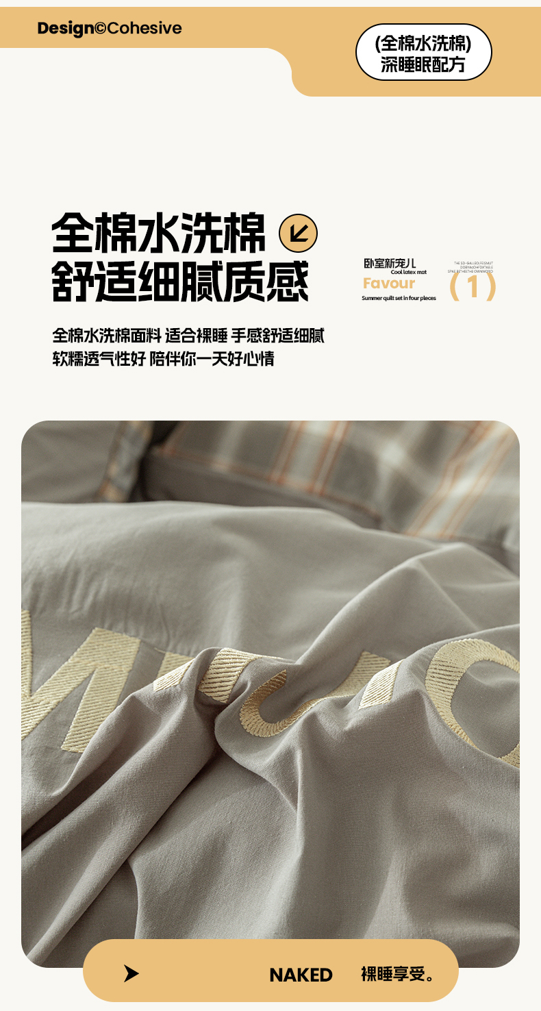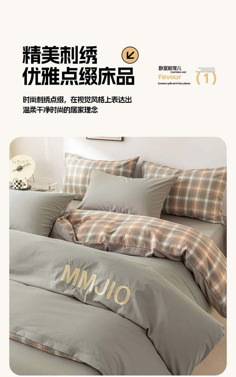 当前位置: 91家纺网 > 商品网购 > 床品套件 > 四件套 > 全棉普通四件套 > 寐眠 2024新款全棉水洗棉刺绣四件套 摩卡灰棕