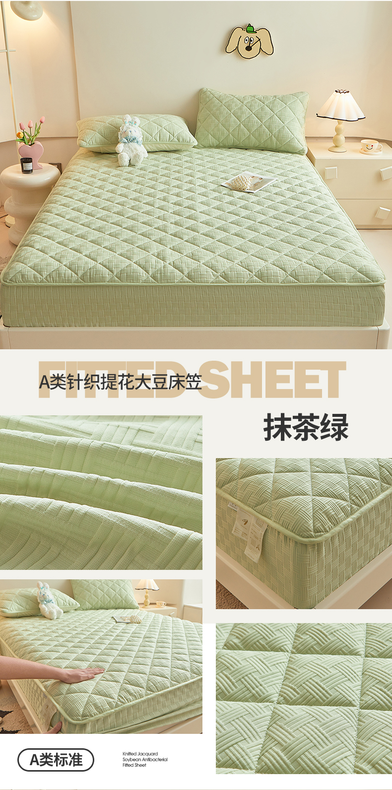 多谷家纺 2024新款针织提花大豆夹棉床笠 抹茶绿
