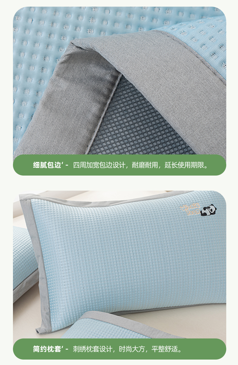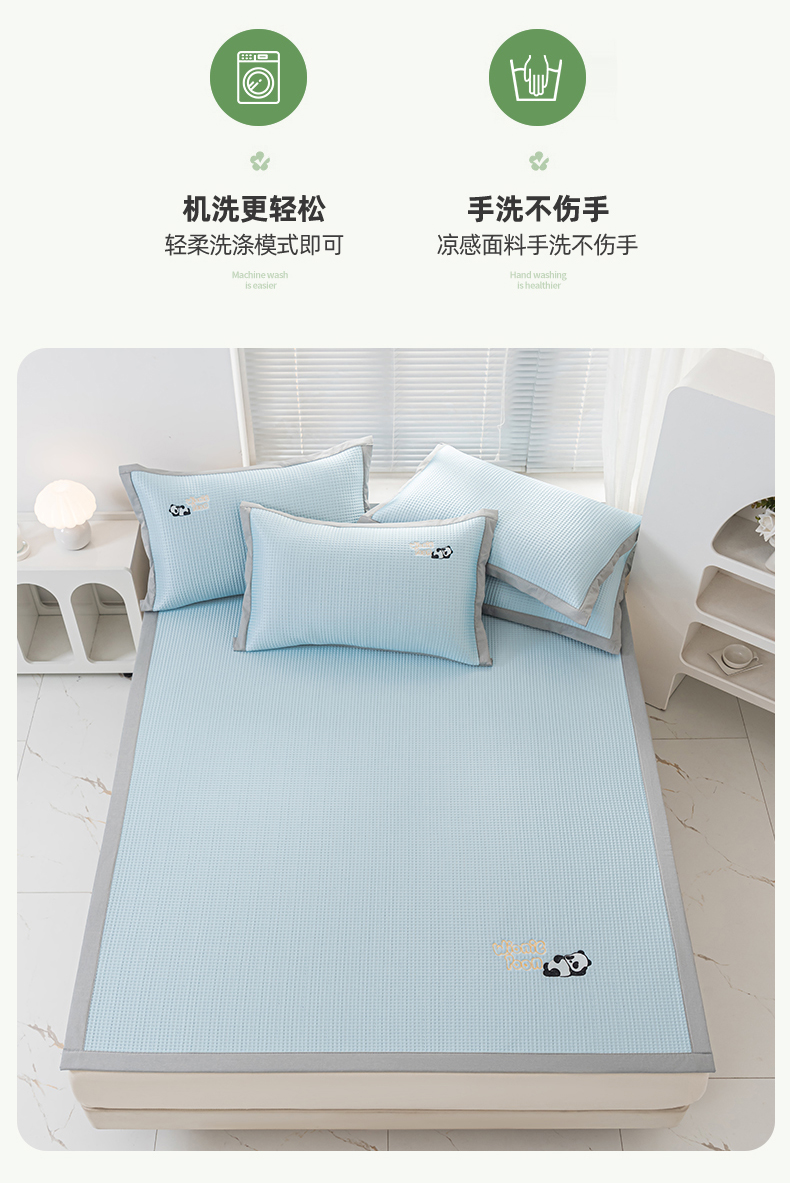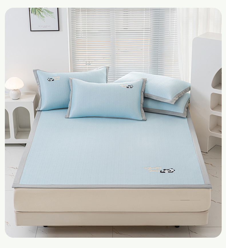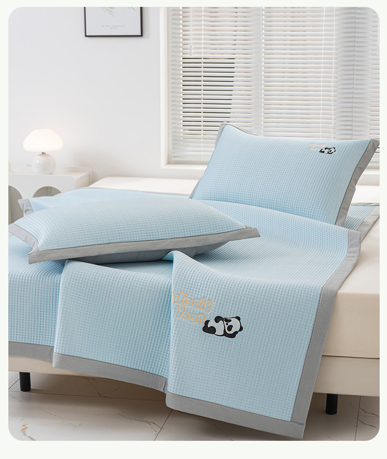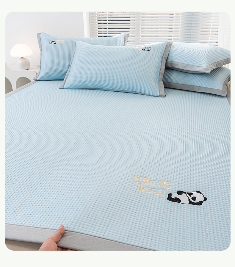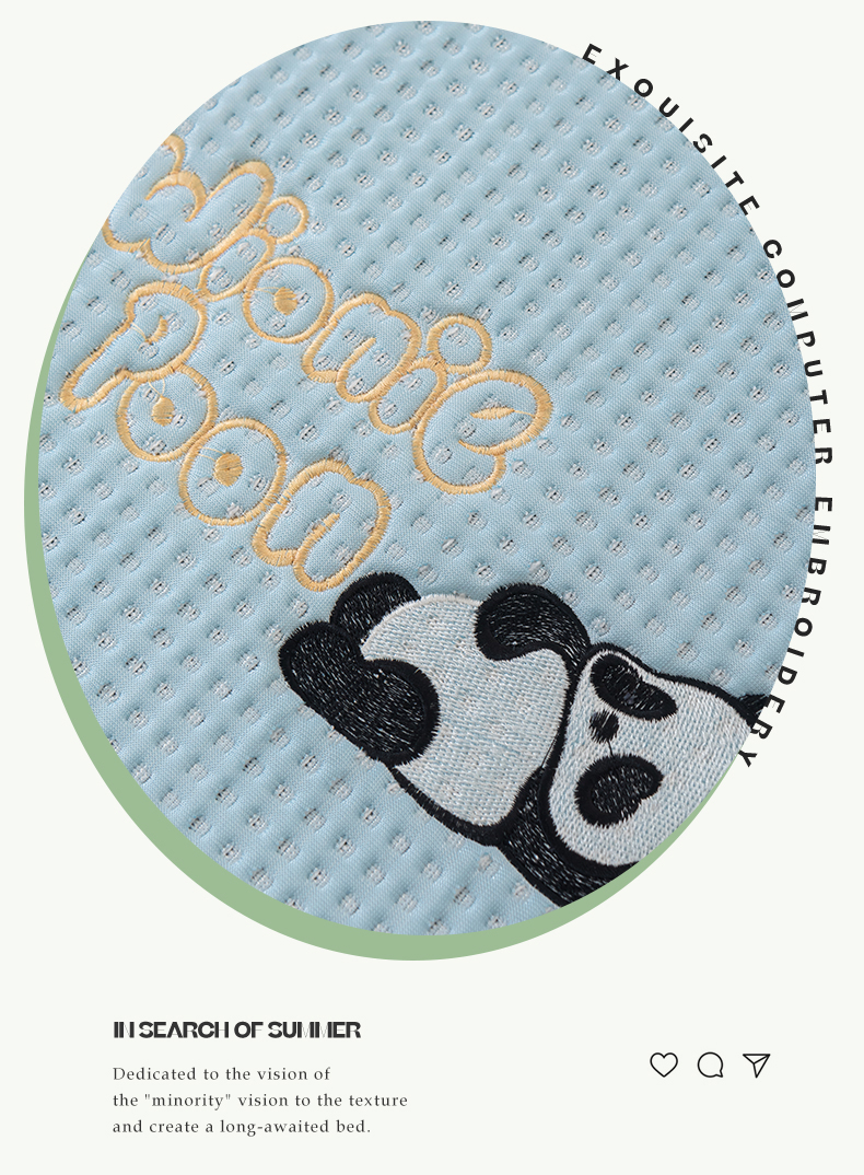 商品名称:春晓 2024新款高分子pe华夫格熊猫刺绣凉感软席 熊猫-天空蓝