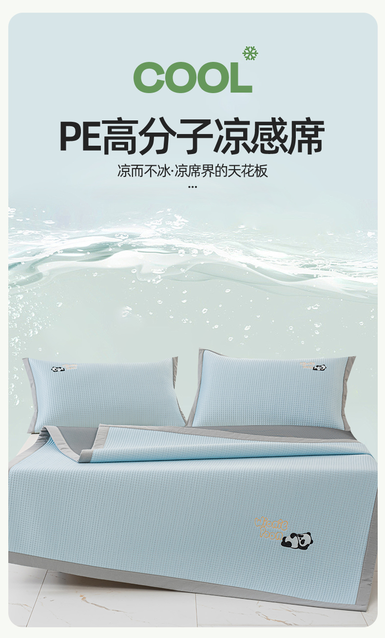 春晓 2024新款高分子pe华夫格熊猫刺绣凉感软席 熊猫-天空蓝