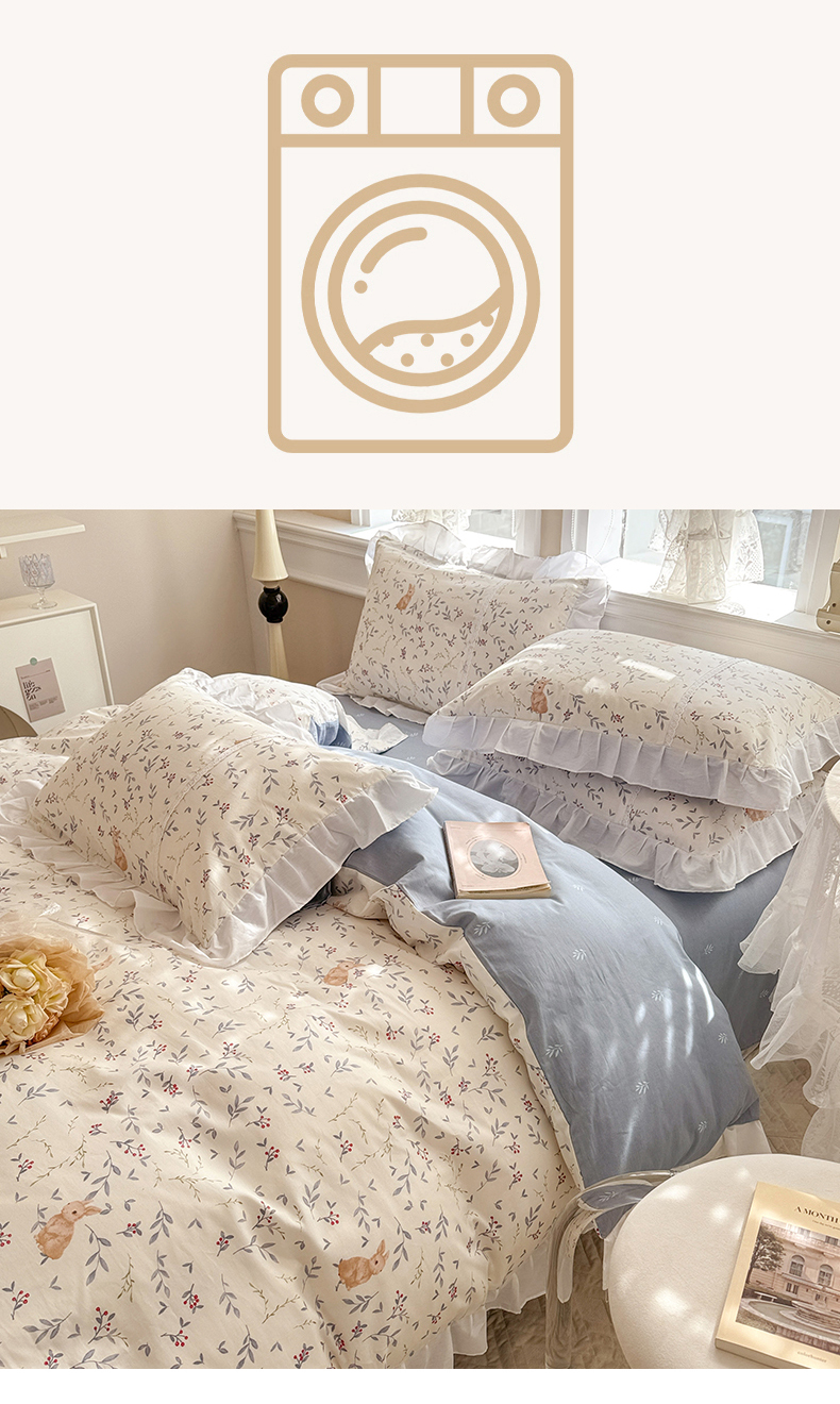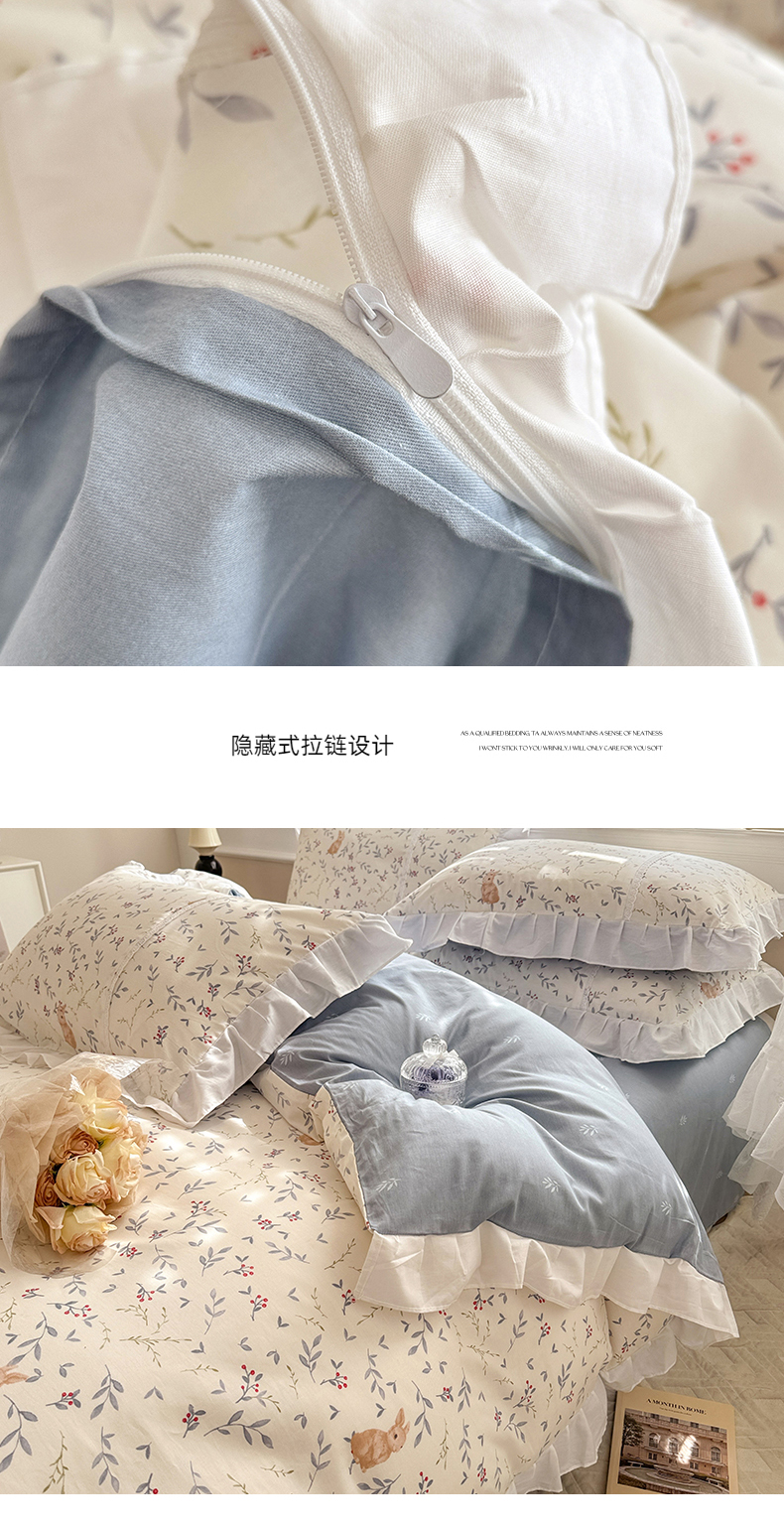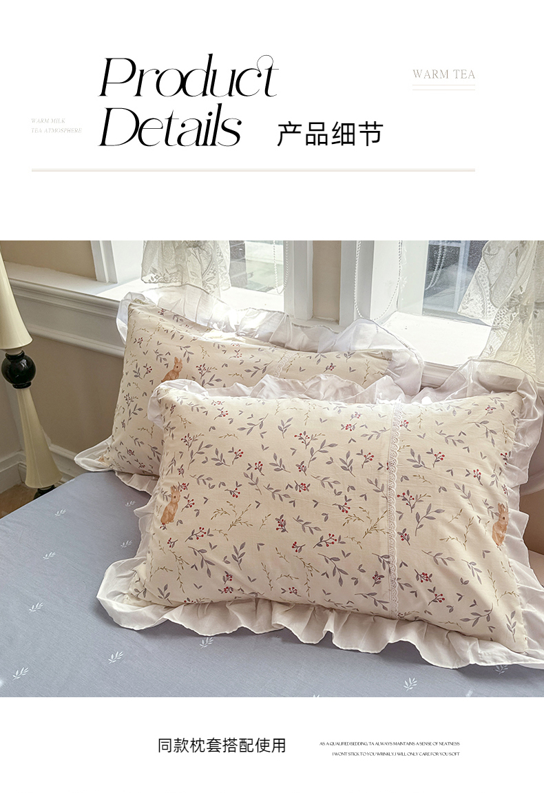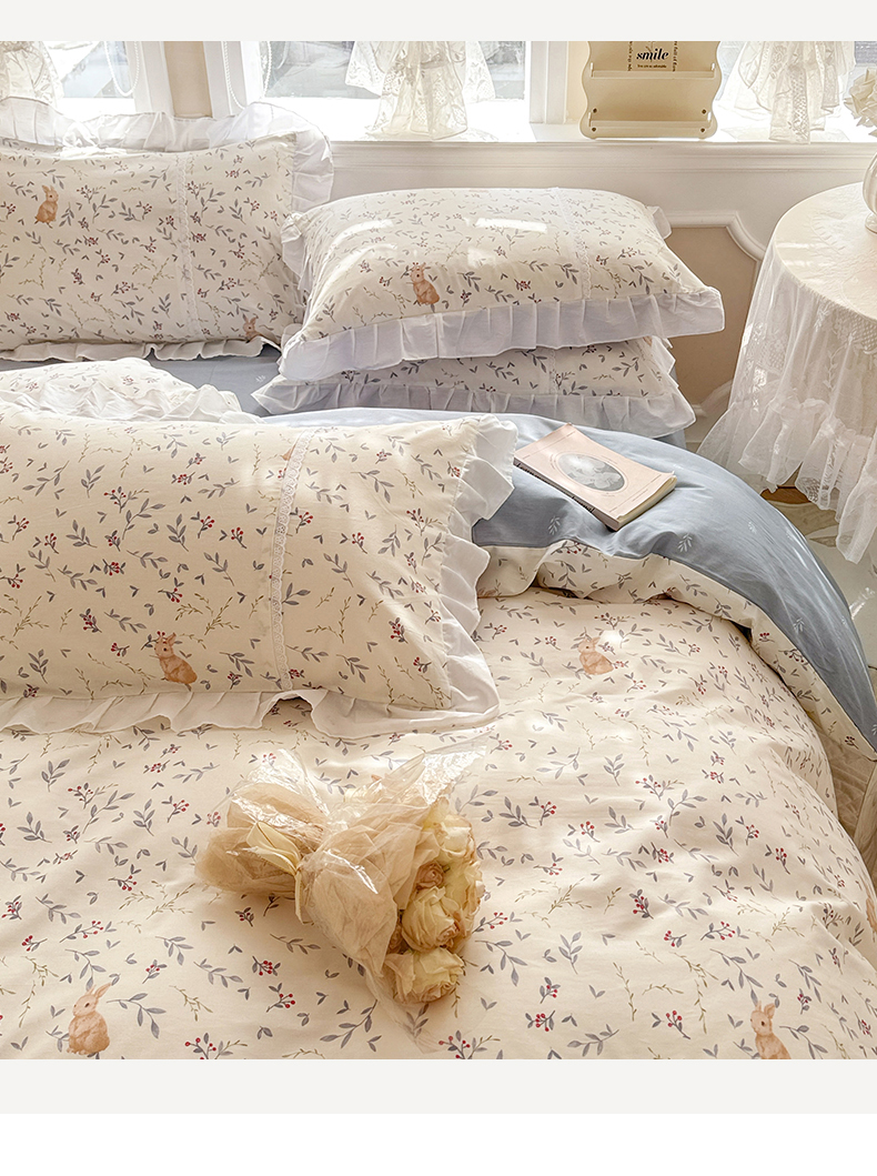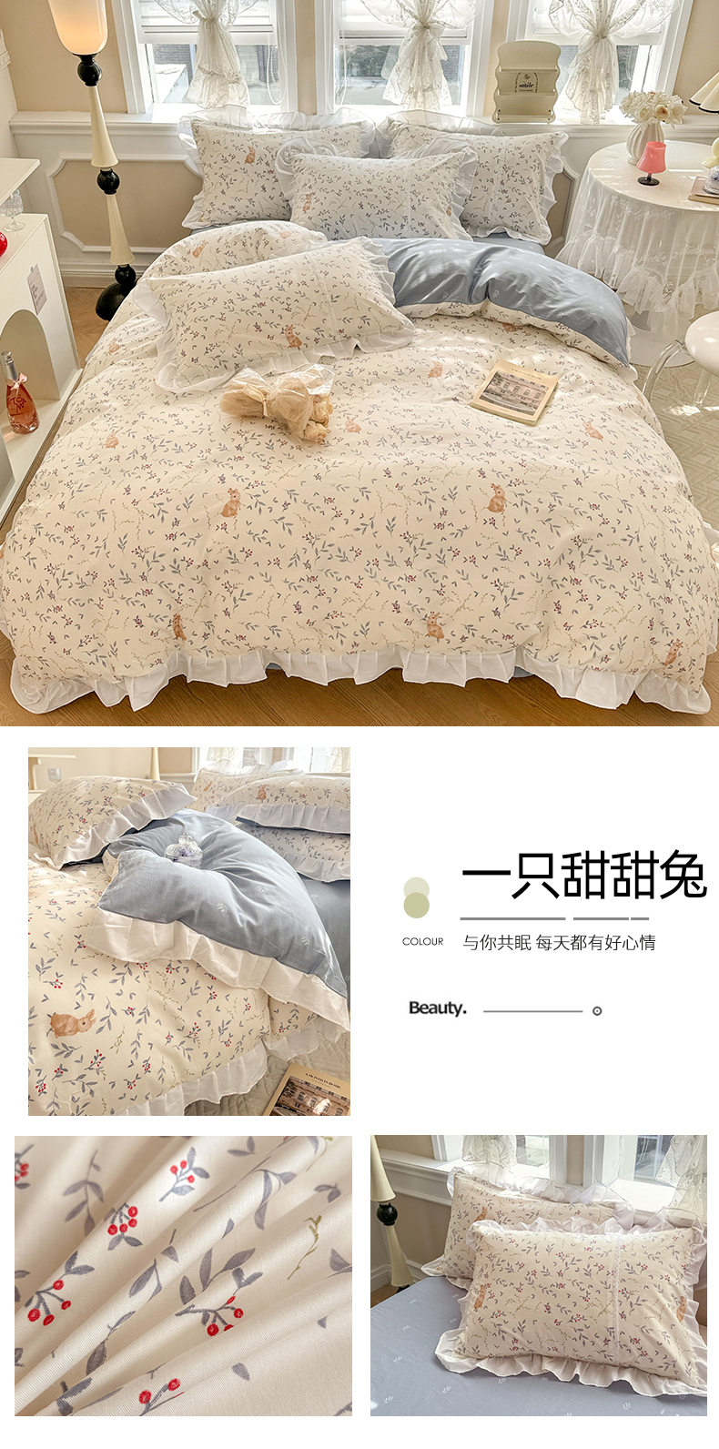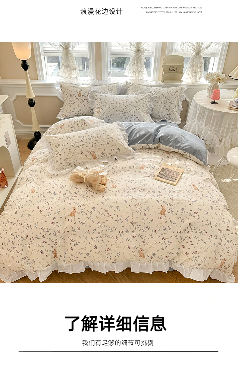 简宜家居(朝初家纺) 2025新款40支斜纹全棉花边款四件套 一只甜甜兔