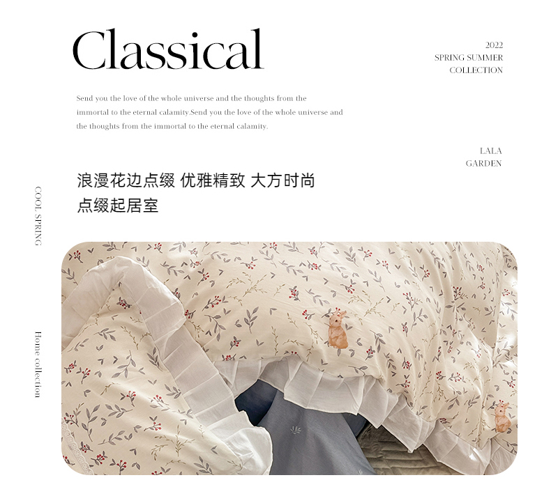 (总)简宜家居 2023新款纯棉全棉斜纹小清新宽边四件套,初遇见,繁花咖,花忆粉,青稚,倾心紫,素雅灰,东篱,锦簇,烂漫,浅牧
