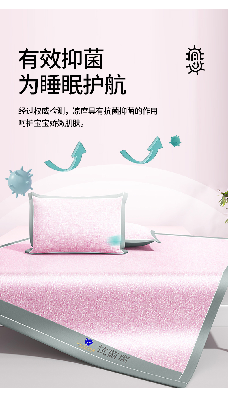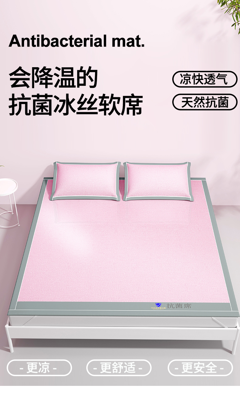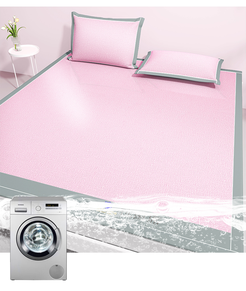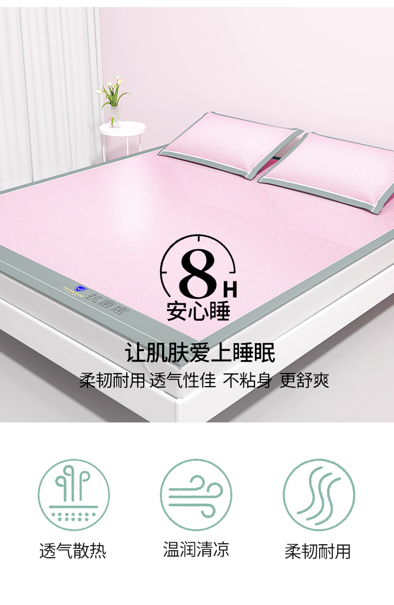 商品名称:席佬大 2025新款可机洗抗菌除螨冰藤席绑带款 床笠款 凉席 少女粉(床笠款)