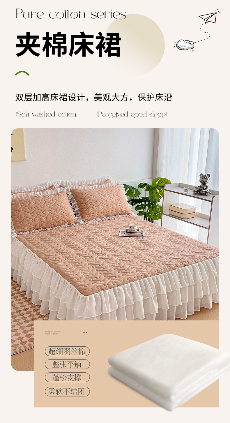 (总)屹成家纺 2024新款天竺棉夹棉床裙,玳瑁紫,典雅驼,豆沙,格调蓝,经典灰,孔雀绿