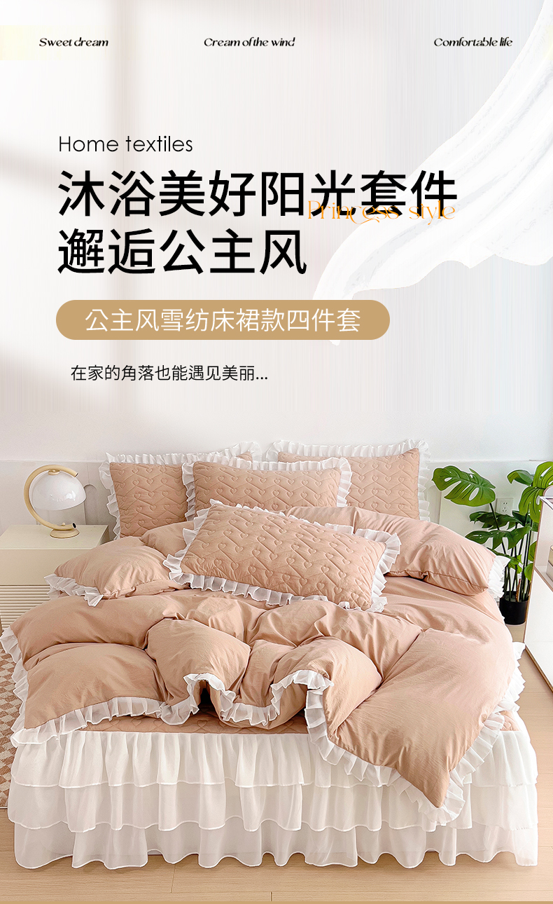 商品名称:屹成 2024新款水洗棉雪纺丽莎款床裙款四件套 卡其