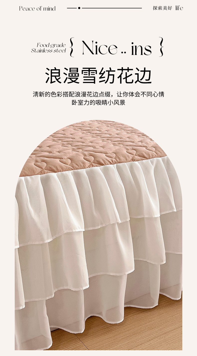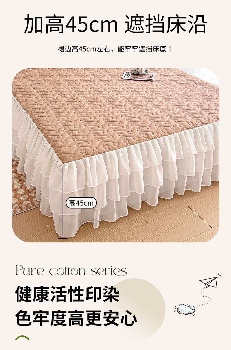 (总)屹成家纺2025新款水晶绒夹棉绗缝蕾丝床裙三件套(塞纳河畔)床裙单件起售价不低于105元,大红,豆沙,翡翠绿,粉玉,橄榄绿,蔚蓝,银灰