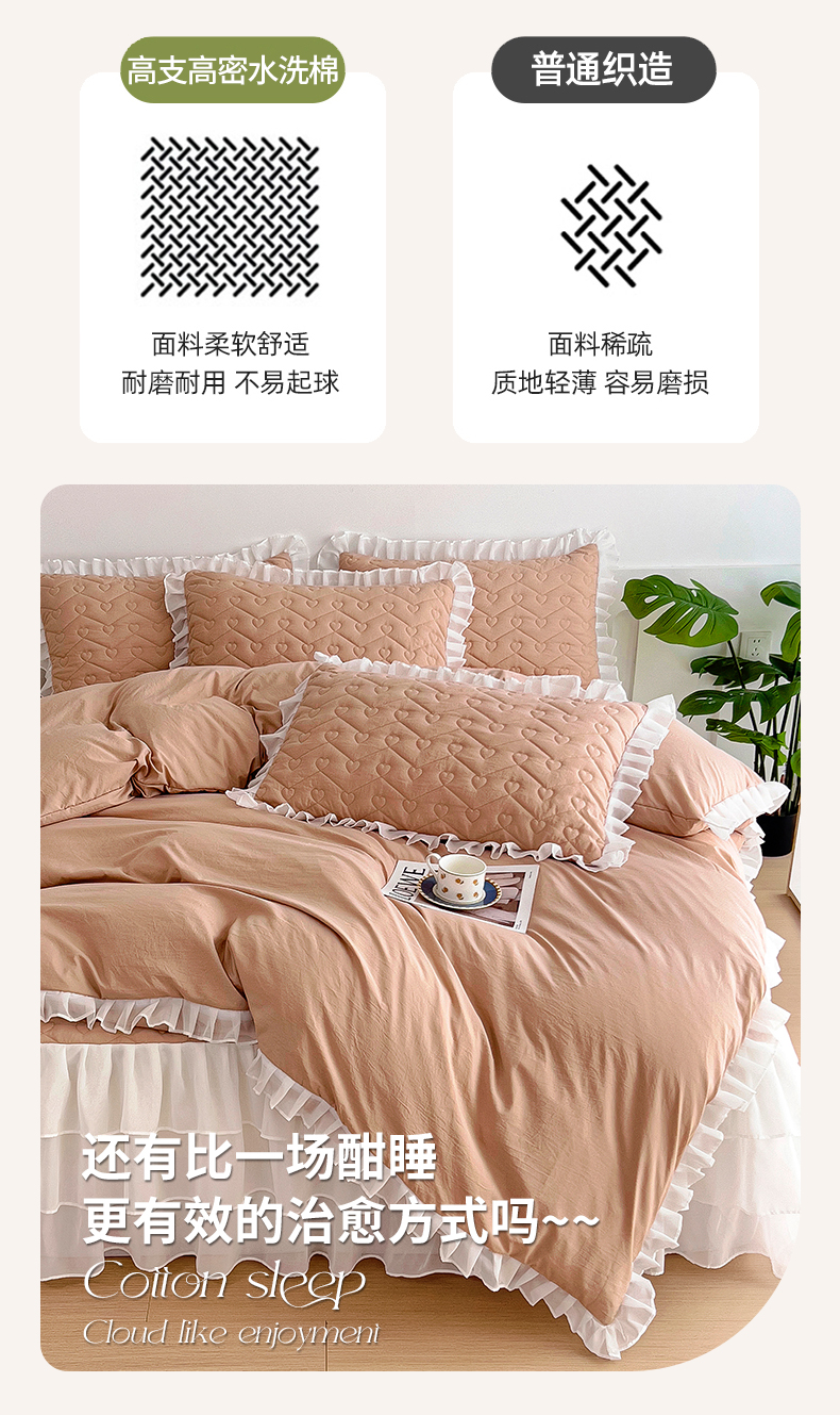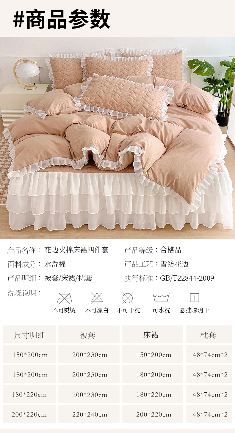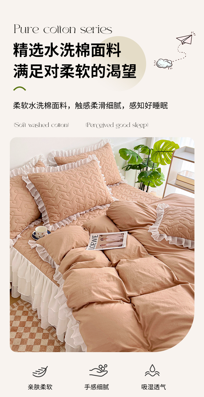 (总)屹成 2024新款水洗棉蕾丝四季款床笠床裙单品套件-床裙三件套,粉玉,豆沙,粉红,大红,橄榄绿,卡其,玫红,浅紫,水绿,天蓝,银灰