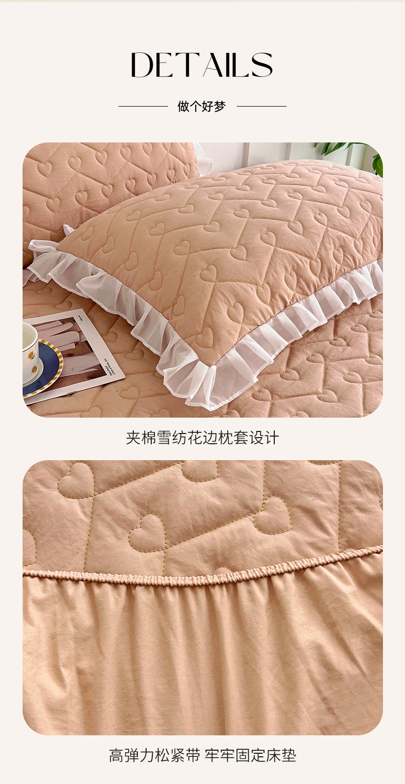 (总)屹成 2024新款水洗棉蕾丝四季款床笠床裙单品套件-床裙三件套,粉玉,豆沙,粉红,大红,橄榄绿,卡其,玫红,浅紫,水绿,天蓝,银灰