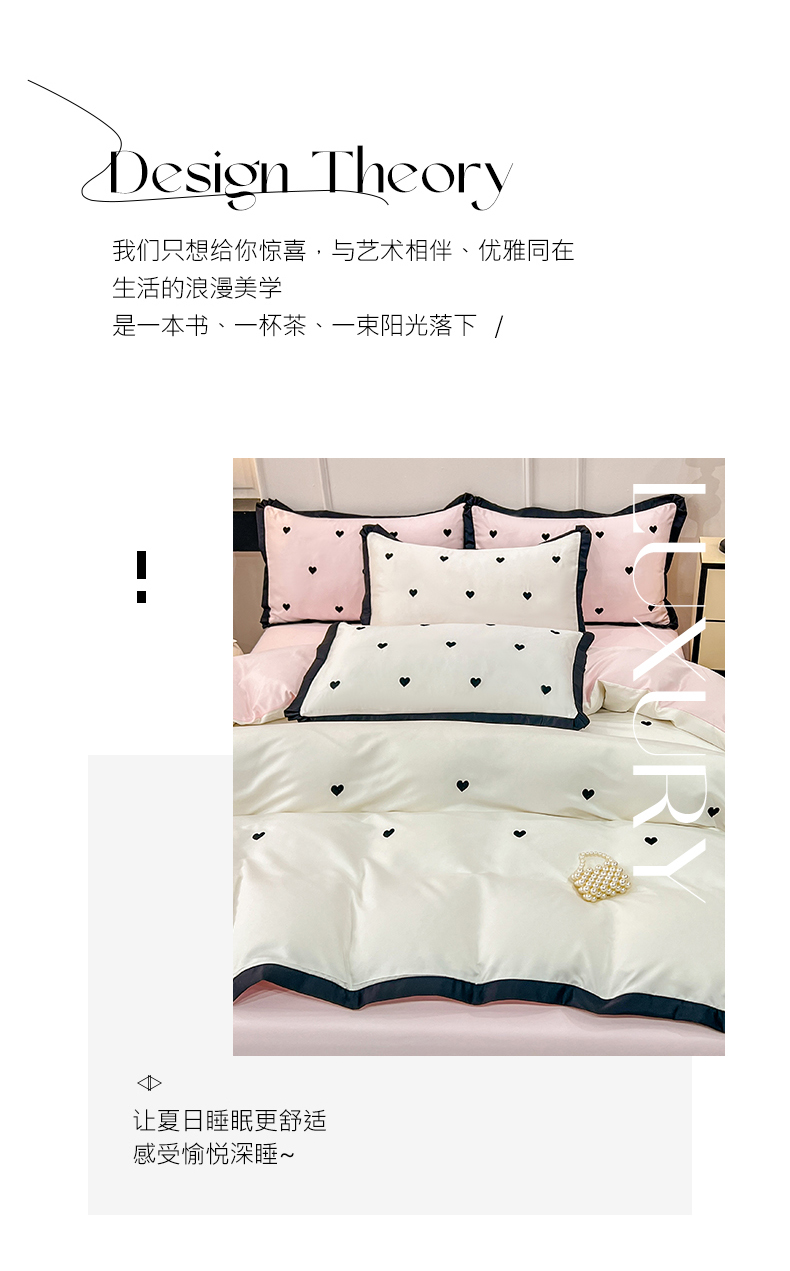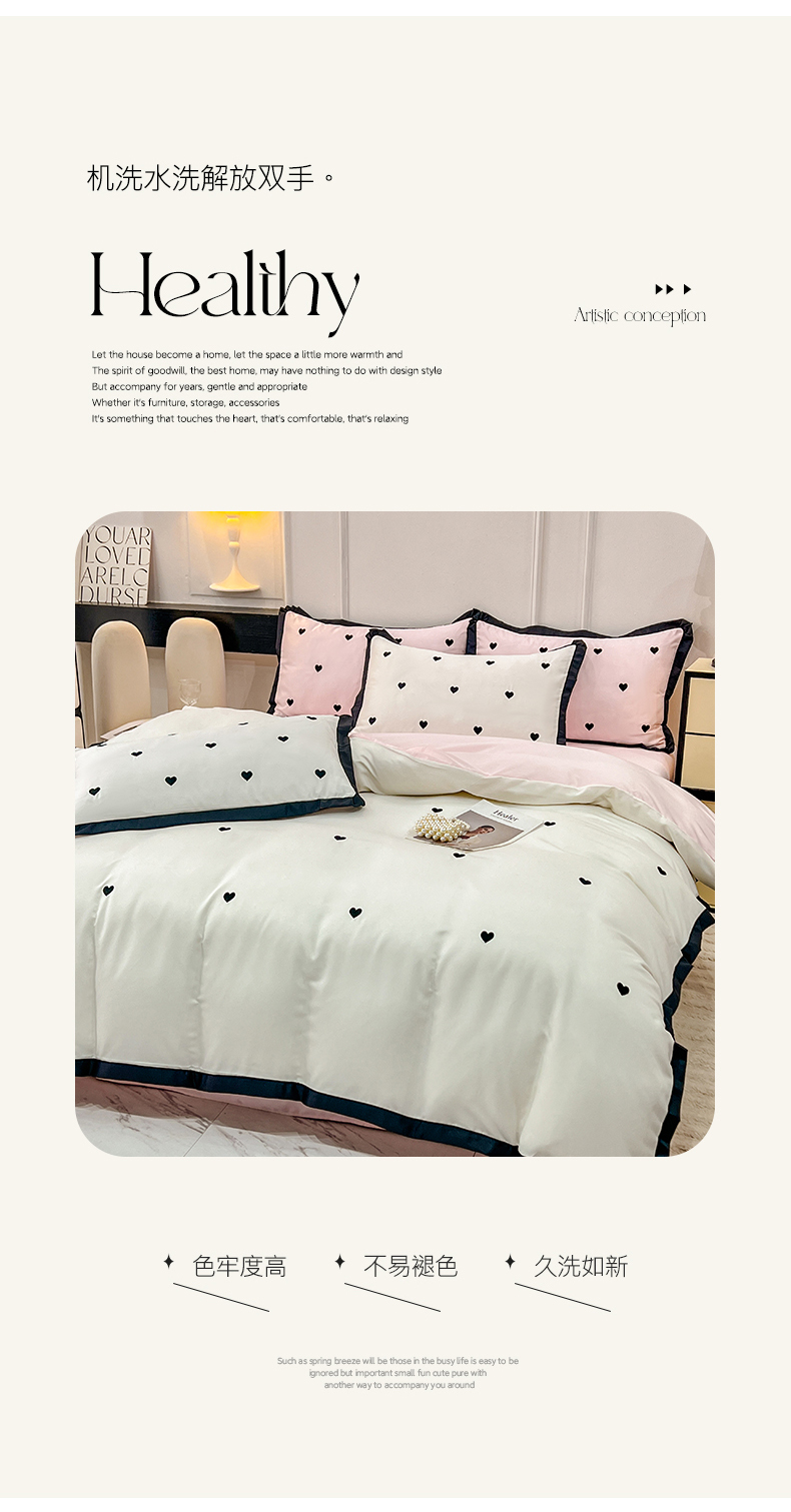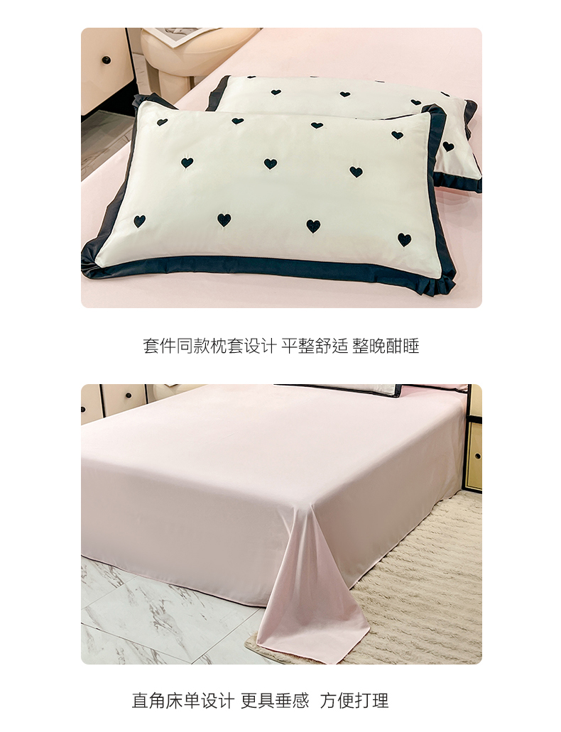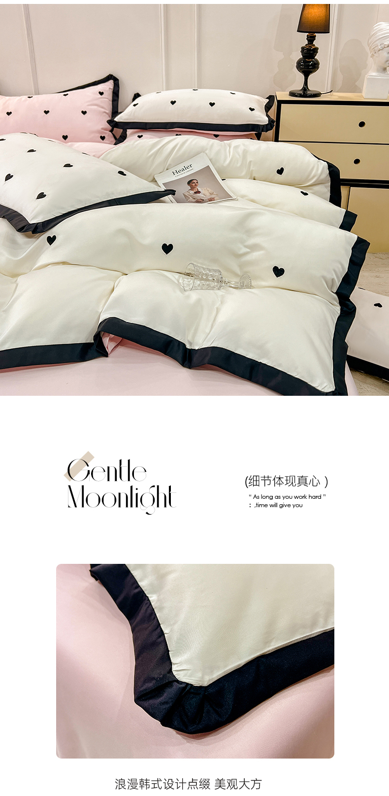 艾米家居 2025新款水洗真丝四件套爱心款 黑色爱心款-白加粉