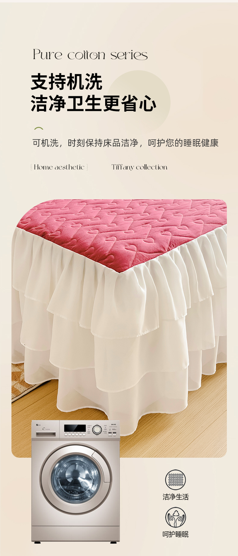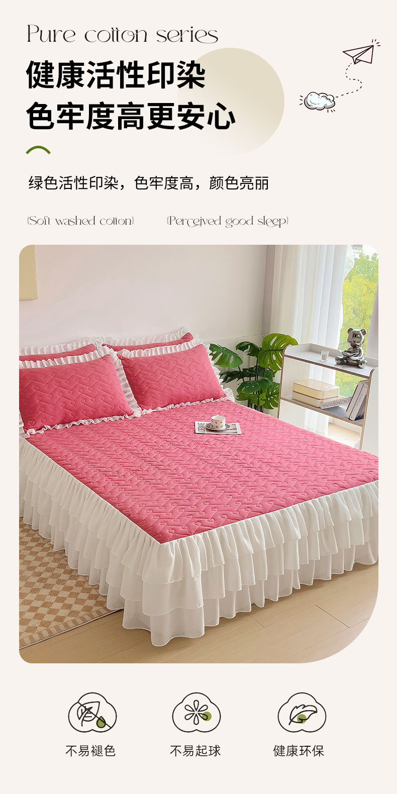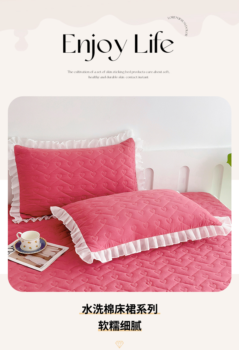 (总)屹成 2024新款水洗棉蕾丝四季款床笠床裙单品套件-床裙三件套,粉玉,豆沙,粉红,大红,橄榄绿,卡其,玫红,浅紫,水绿,天蓝,银灰