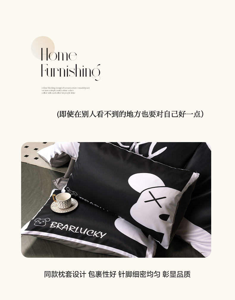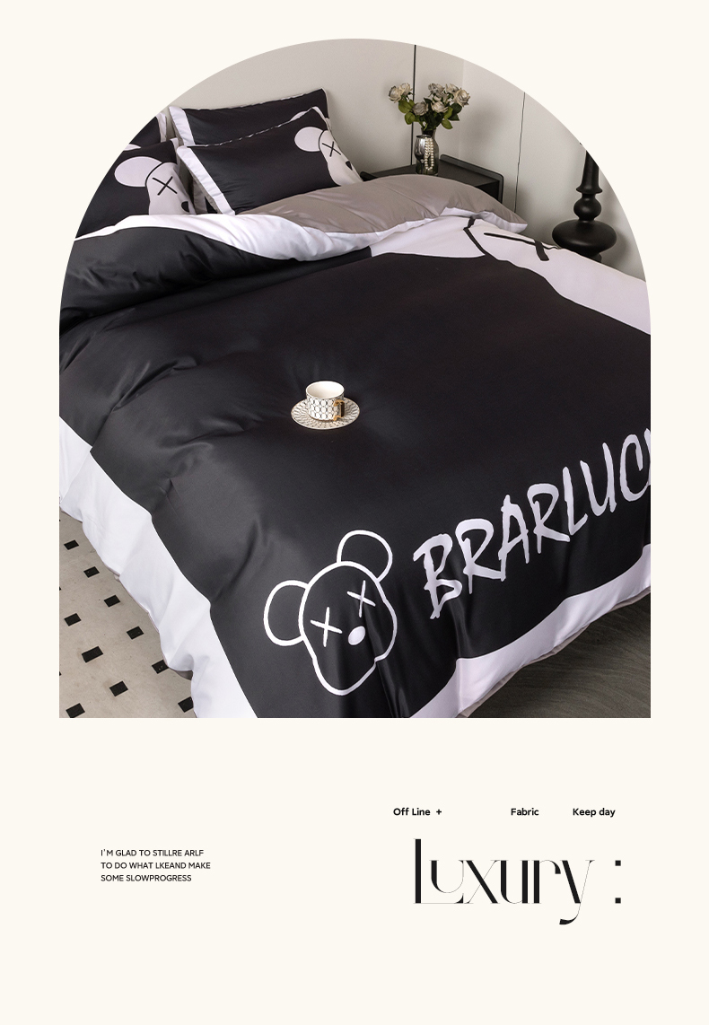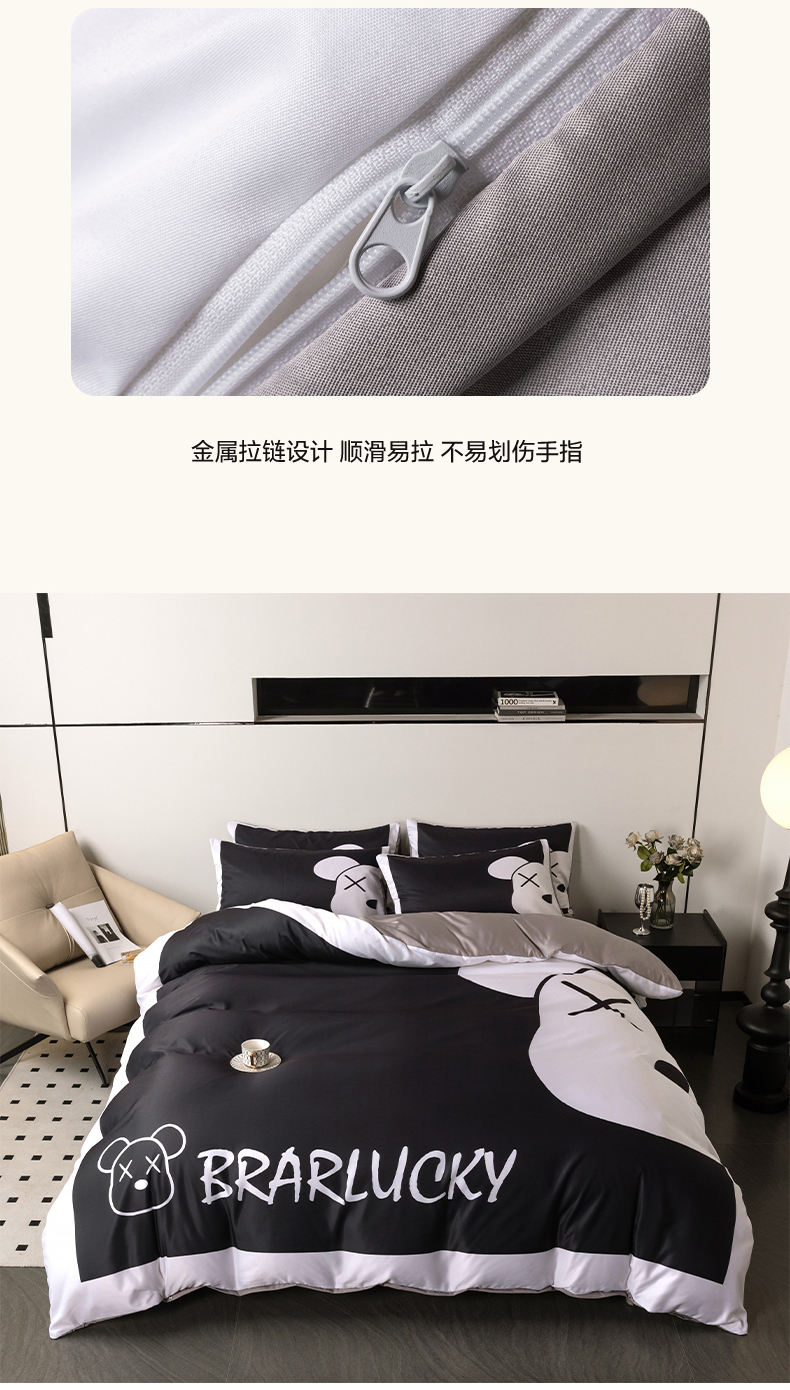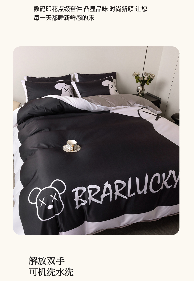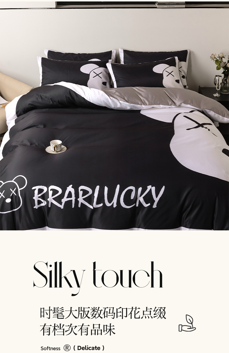 商品名称:摩卡 2024新款博主风水洗真丝四件套 半脸熊-黑