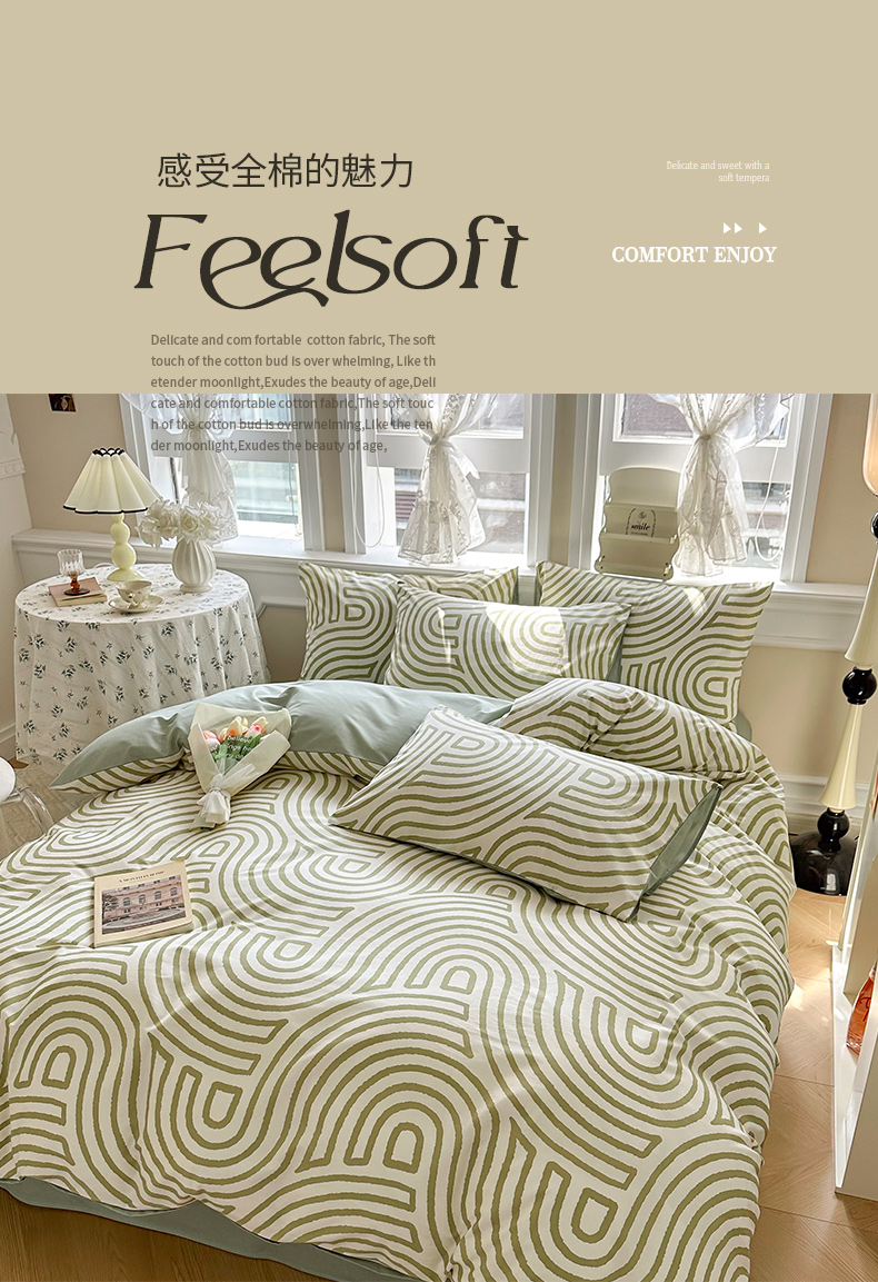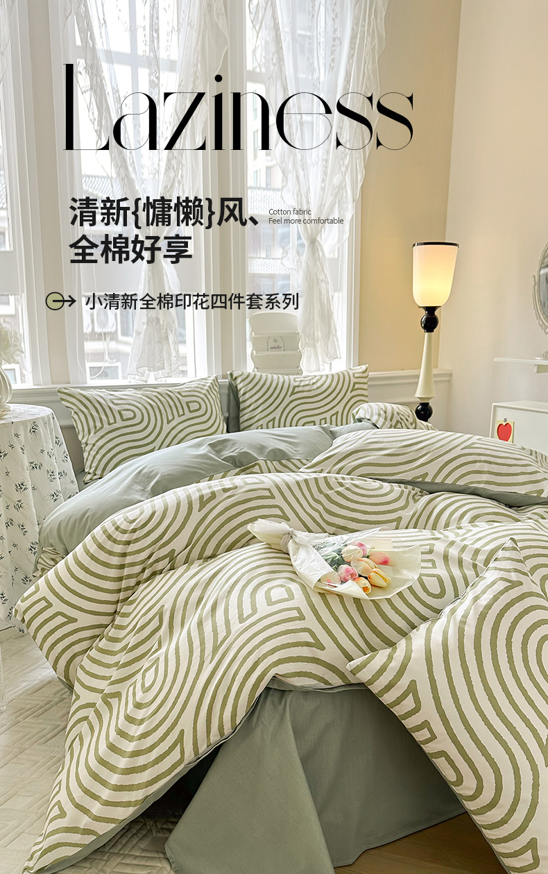 商品名称:晨希家居 2024新款小清新全棉印花四件套 斯诺克