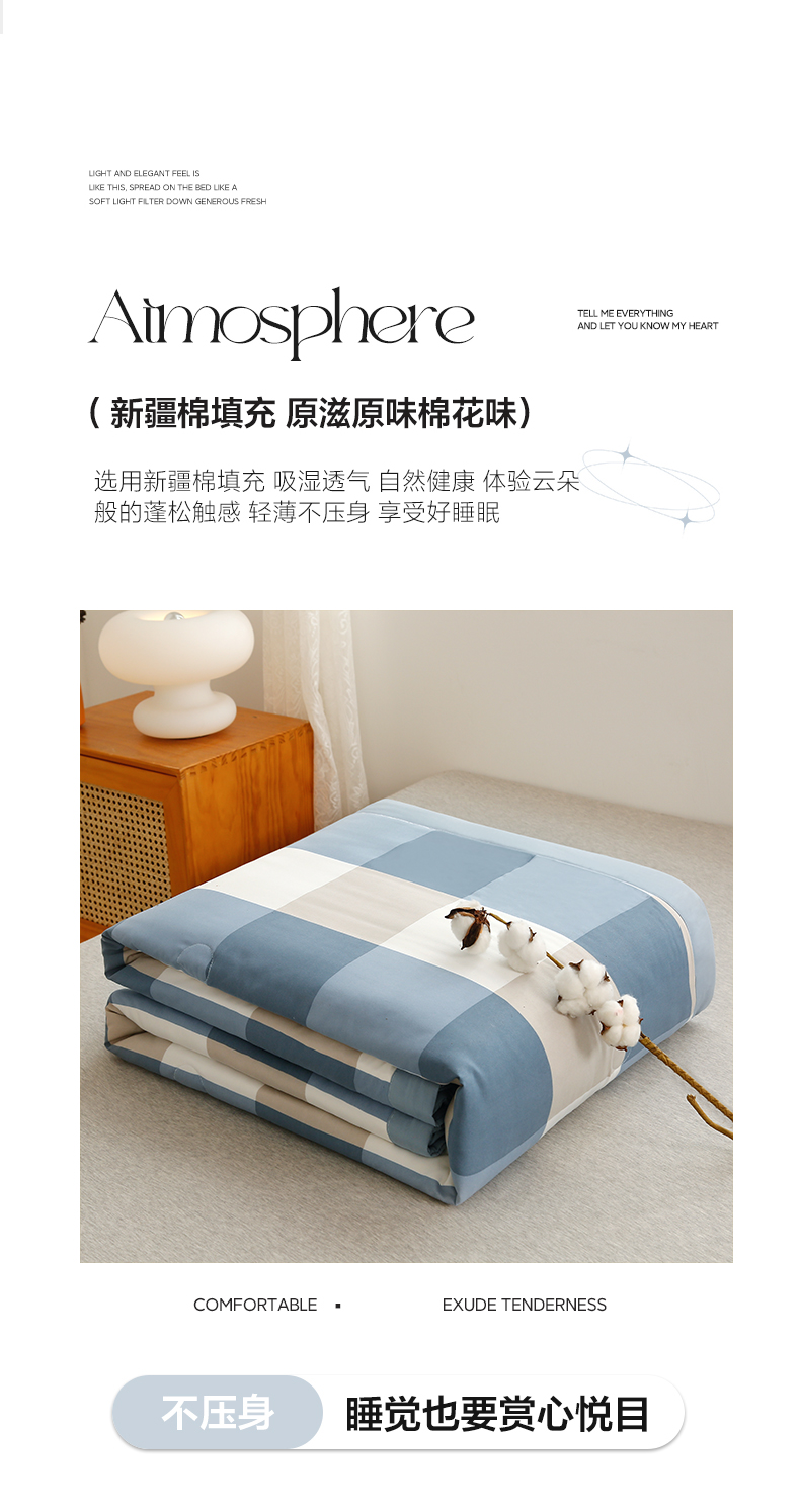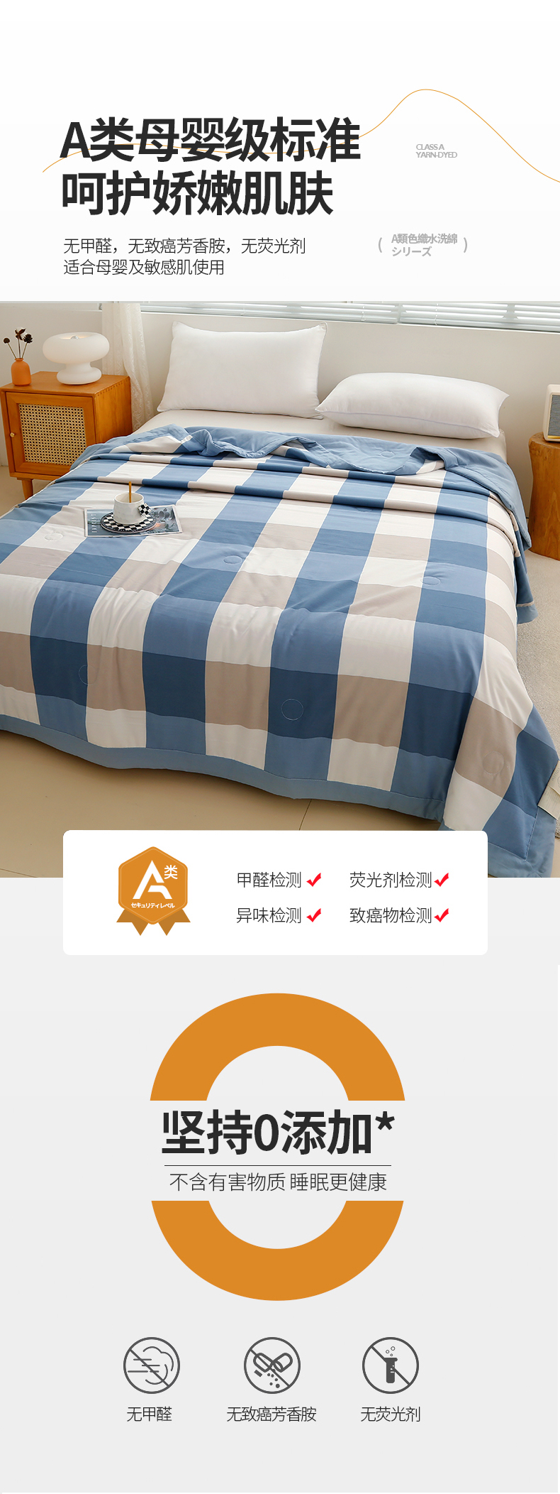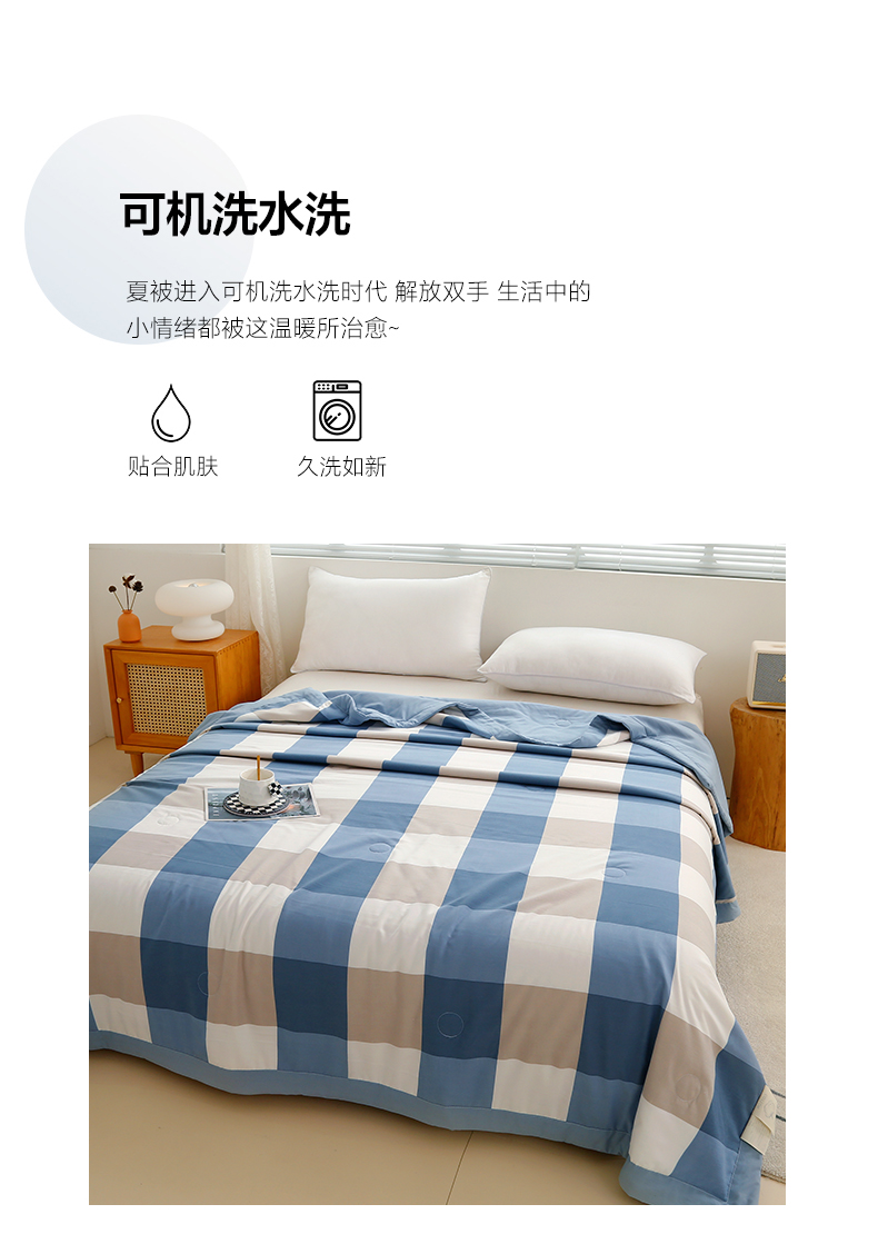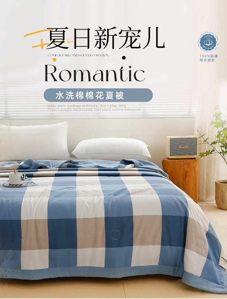 商品名称:凡客家居 2024新款无印风水洗棉新疆棉花夏被夏凉被空调被 蓝大格