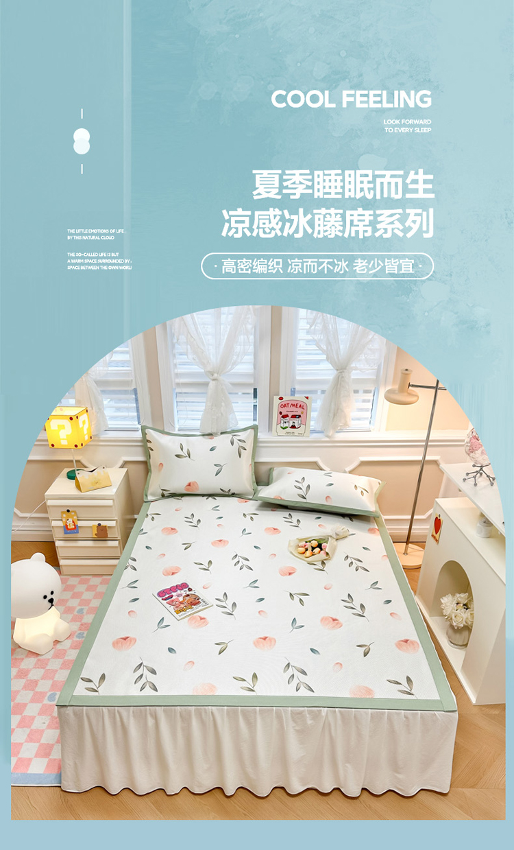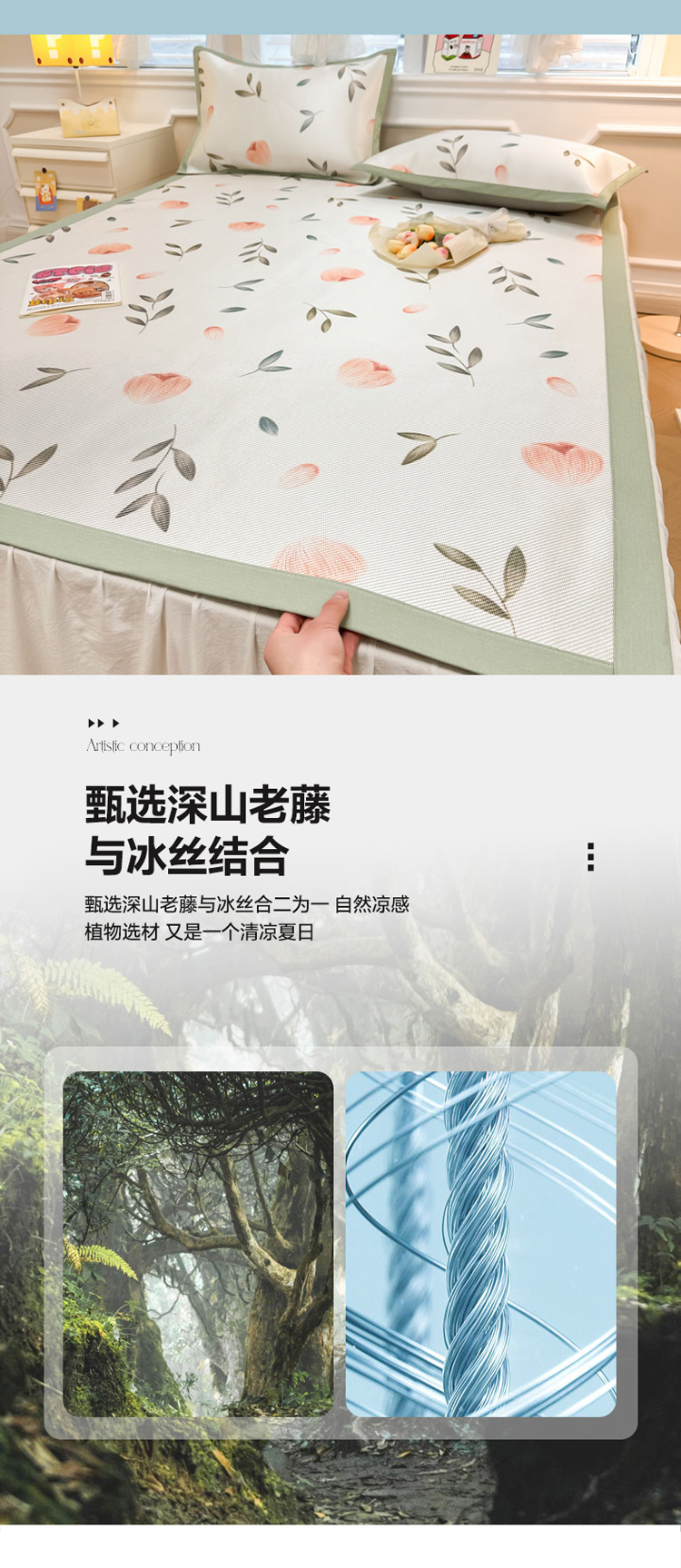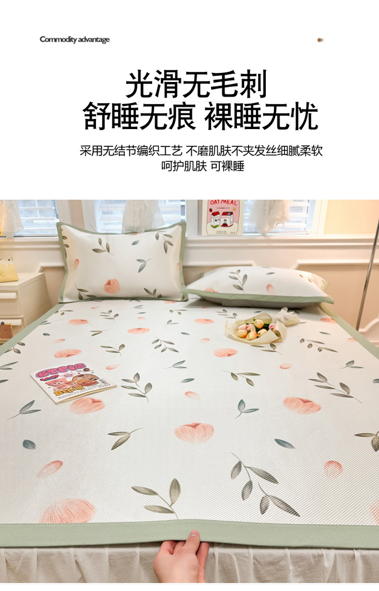 商品名称:慕尚 2025新款800D冰藤凉席 玉兰花