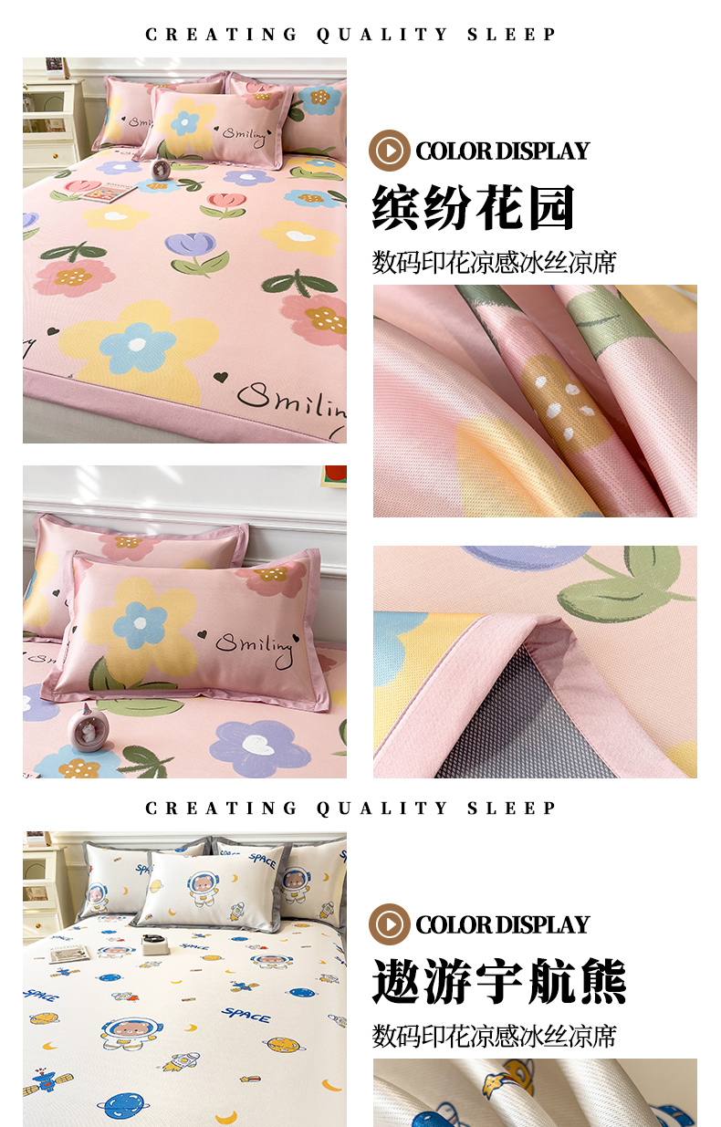 商品名称:孩子王家纺 2024新款凉感卡通冰丝席-成人款 熊猫字母