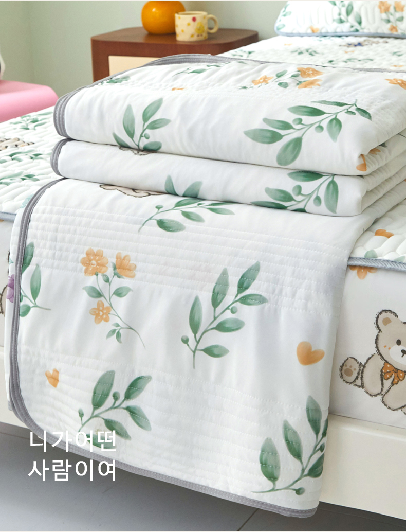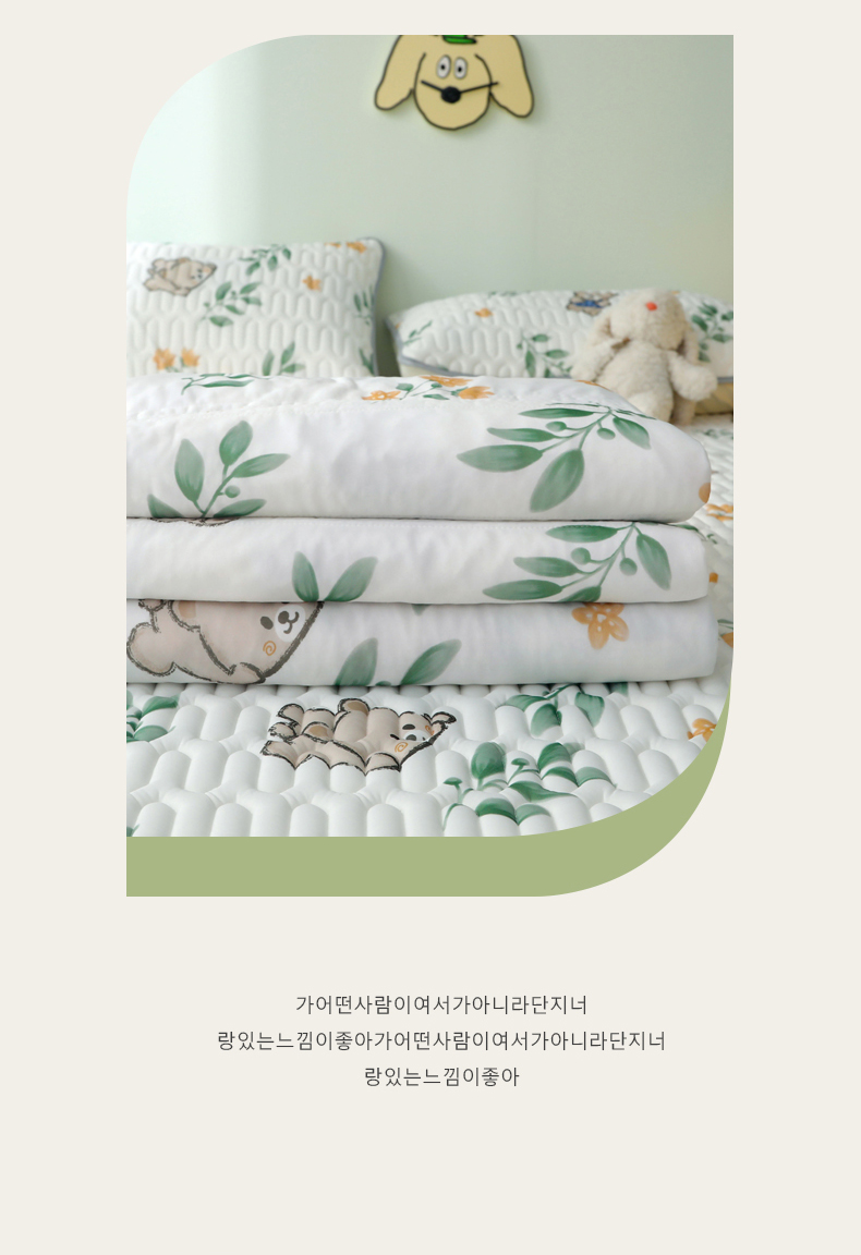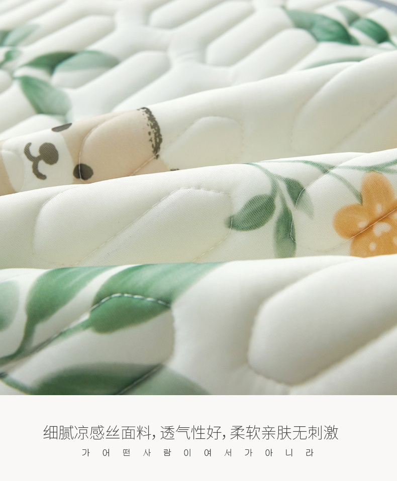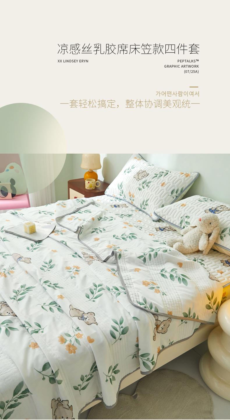 商品名称:LIFE.丽芙 2024年新品0.4乳胶凉席加厚床笠款三件套+凉感丝夏被可组合四件套-图片一 绿叶萌熊