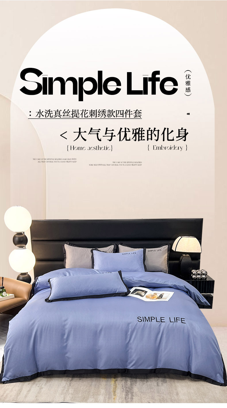 艾米家居 2025水洗真丝提花系列简约生活 简约生活蓝灰