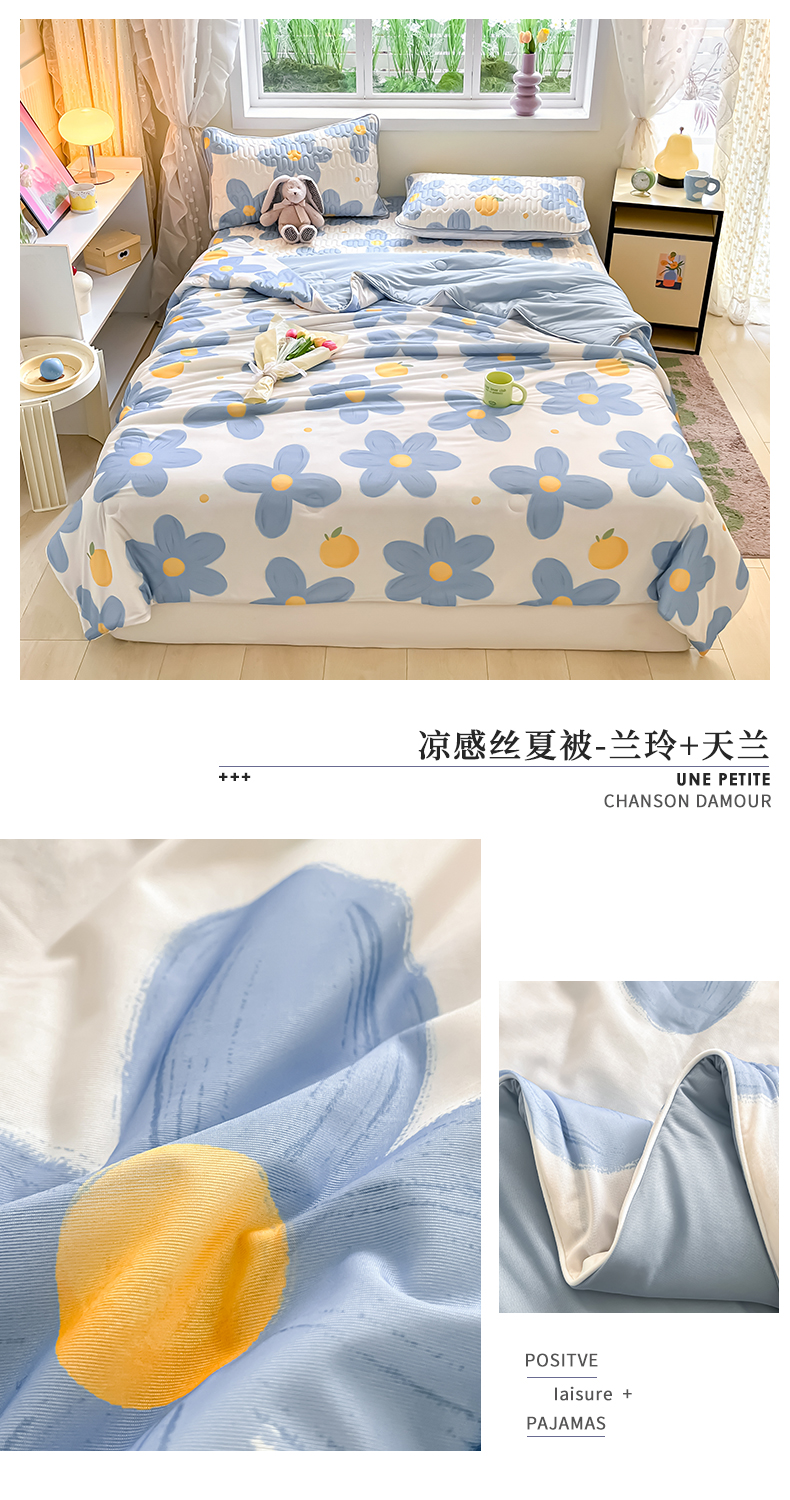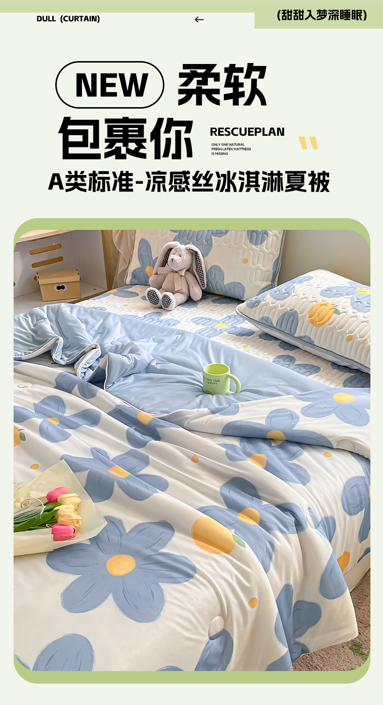 • 91家纺网 家纺一手货源 找家纺 古吉梦 2024新款冰激凌凉感丝夏被-小清新 凉感丝夏被-兰玲+天兰