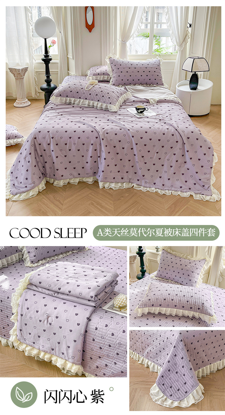 商品名称:宜凡家纺 2024新款莫代尔印花床盖夏被四件套 闪闪心 紫
