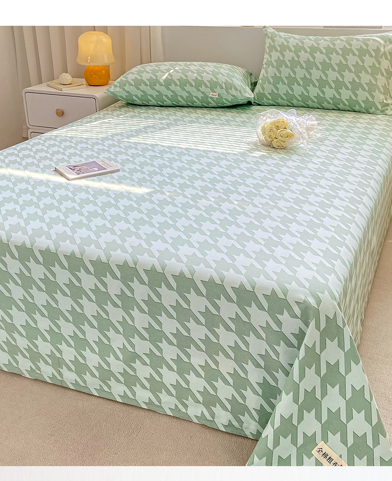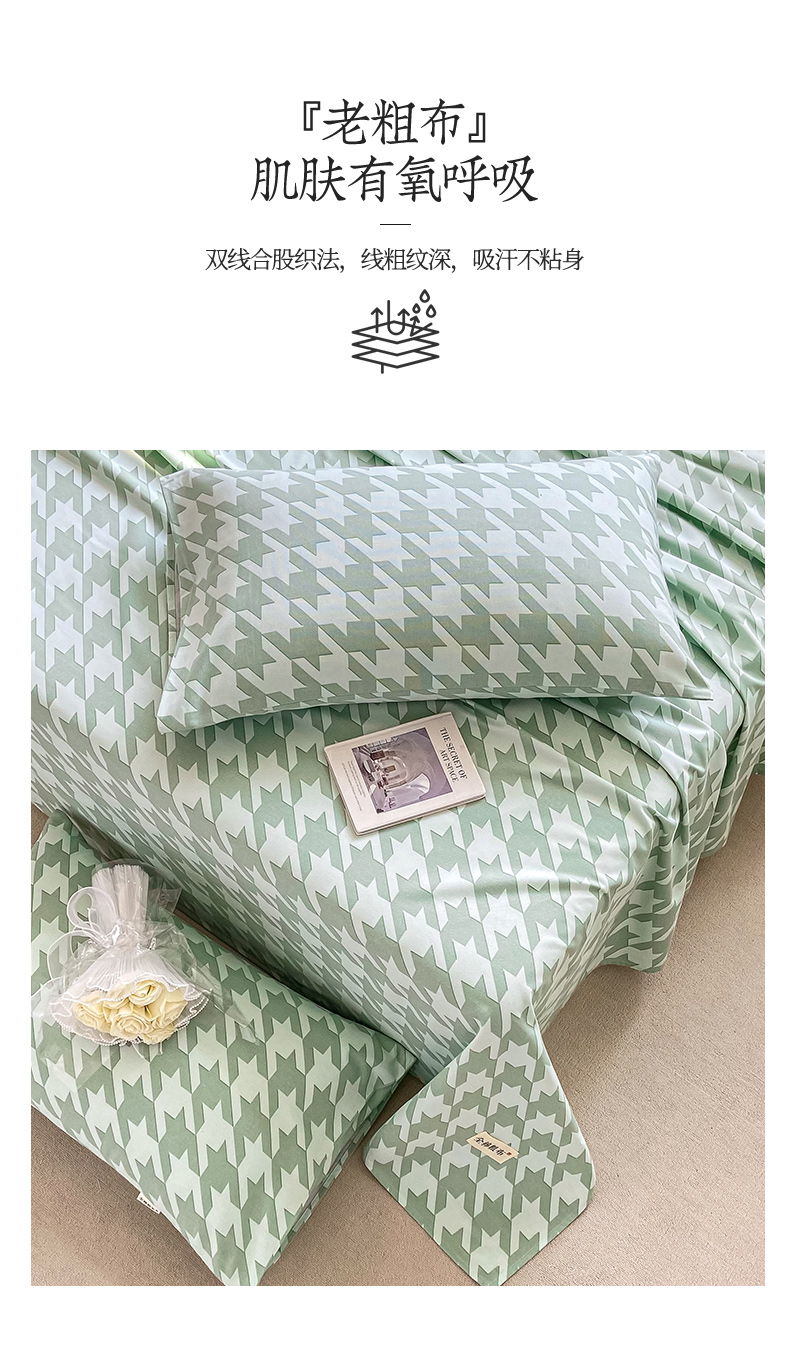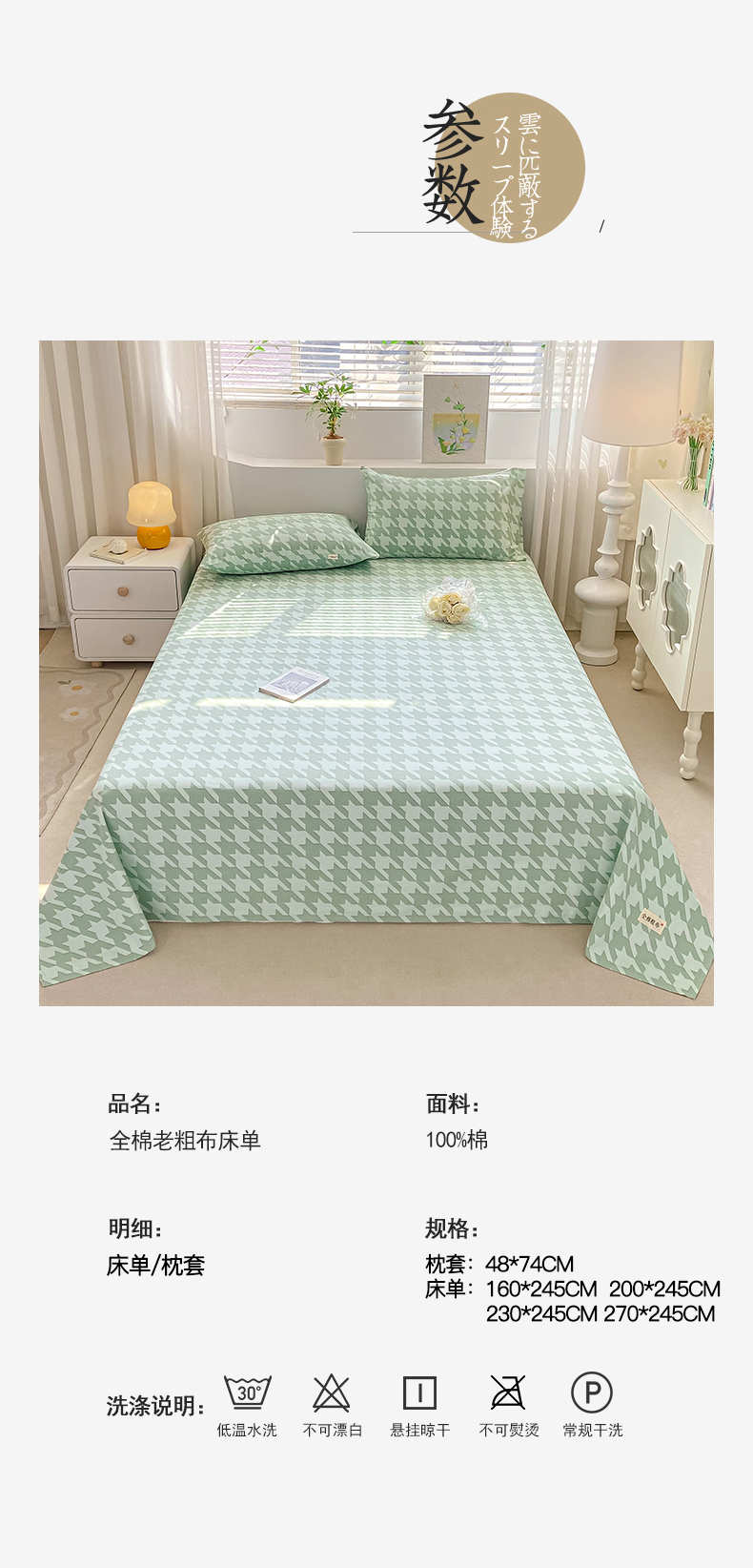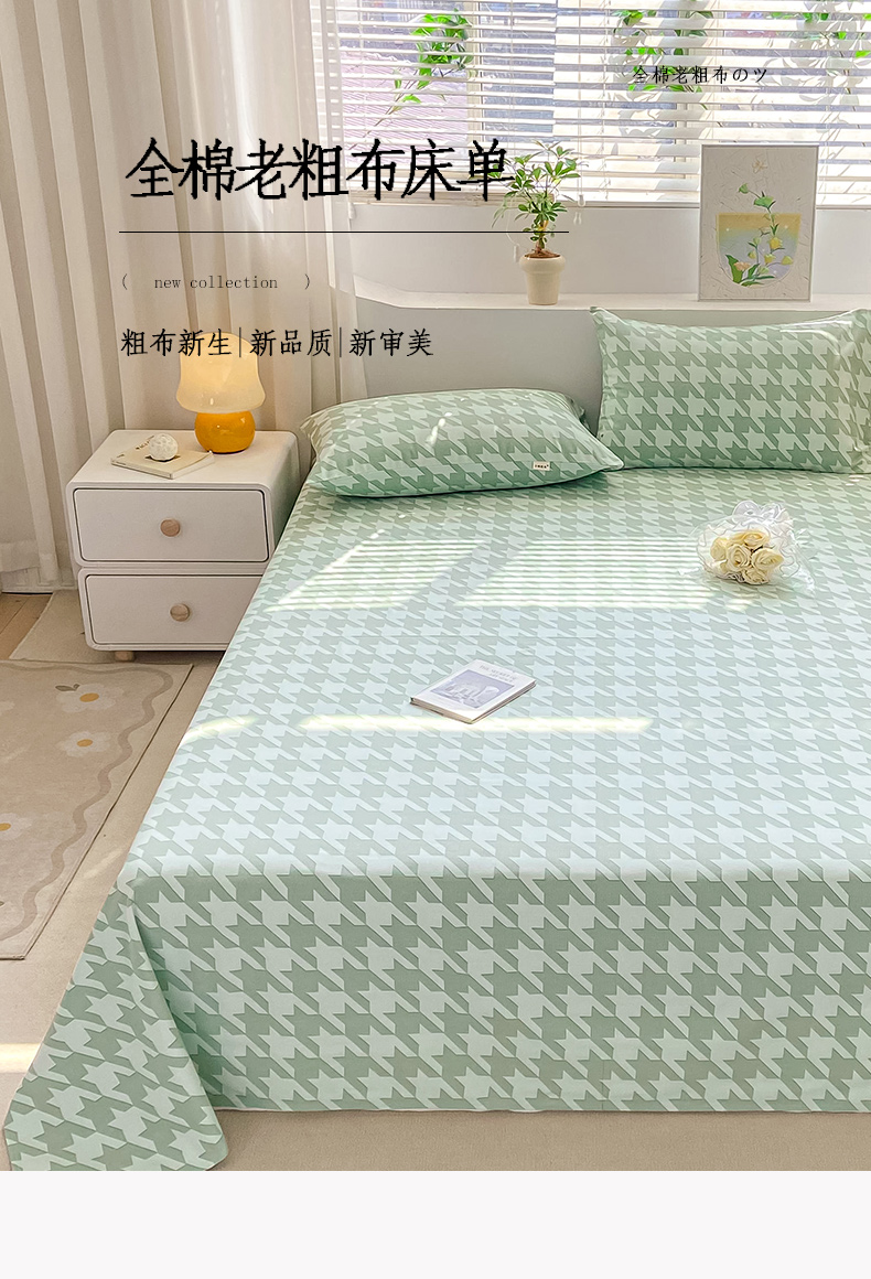 • 91家纺网 家纺一手货源 找家纺 卧趣家纺 2024新品全棉老粗布单品床单床笠系列-单品床单系列 千鸟格-绿