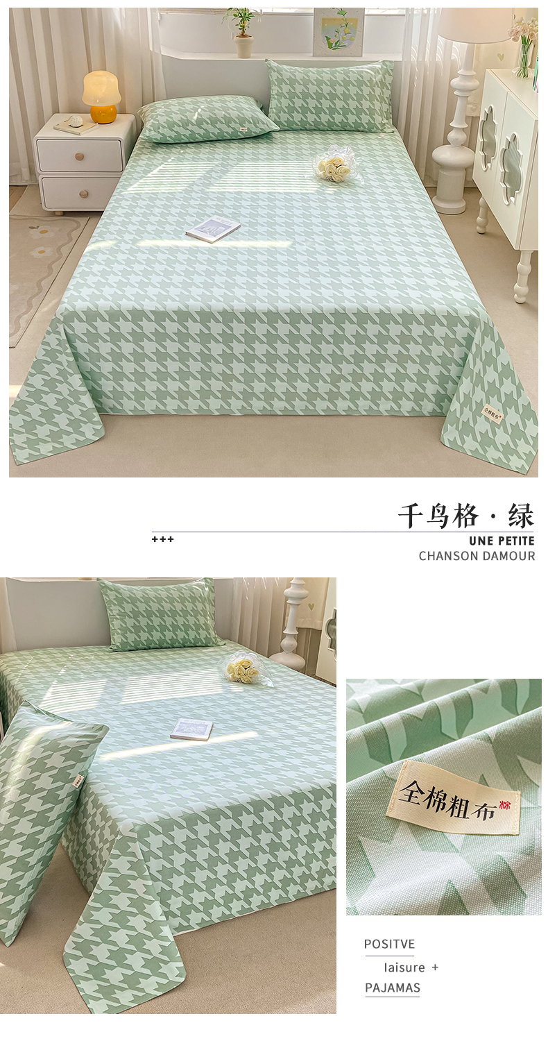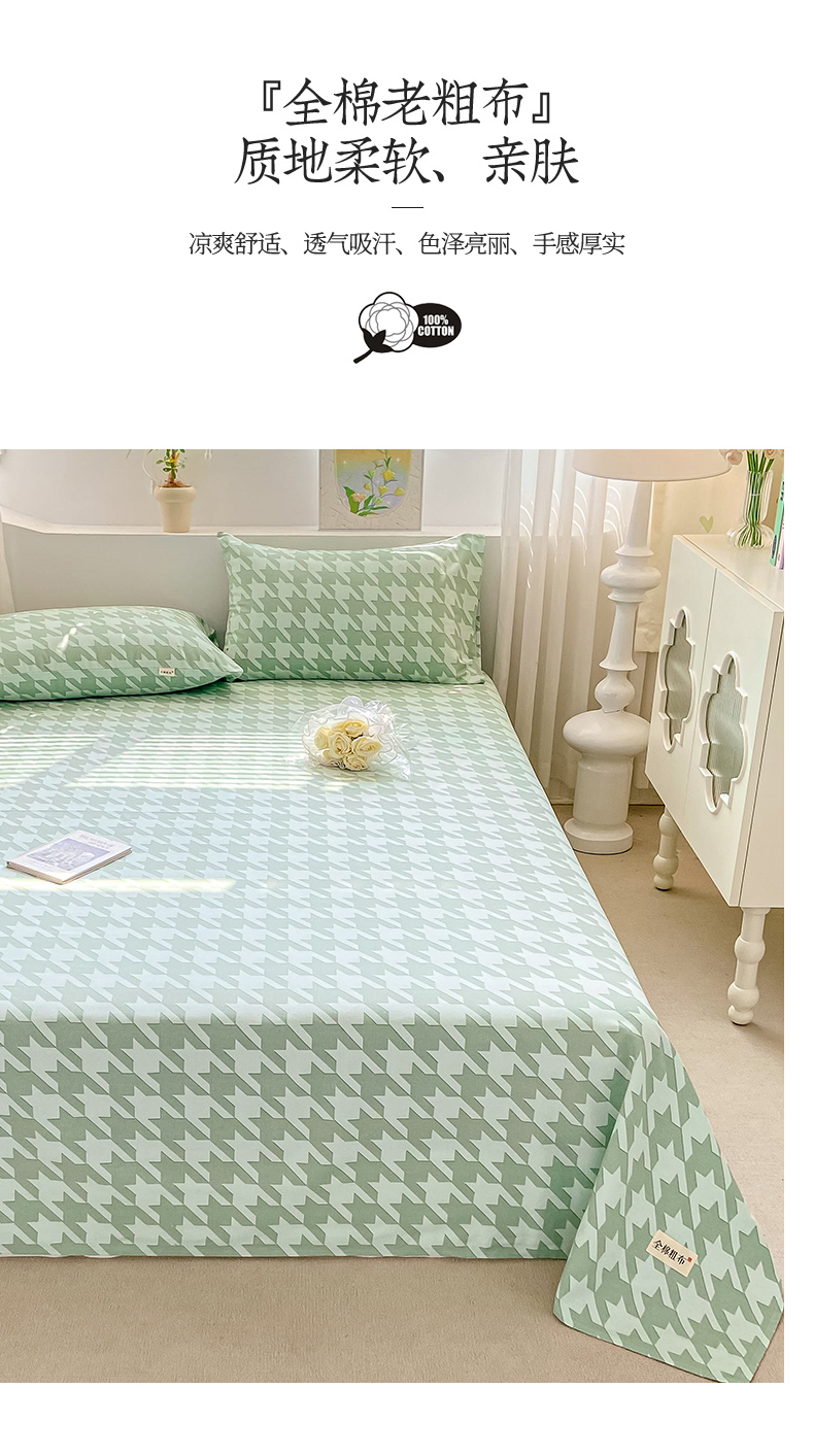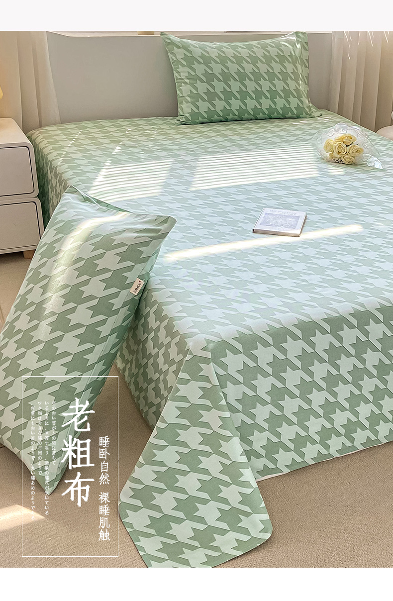 卧趣家纺 2024新品全棉老粗布单品床单床笠系列-单品床单系列 千鸟格-绿