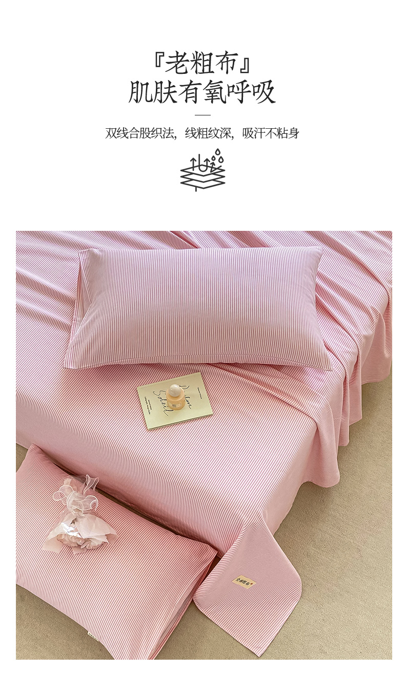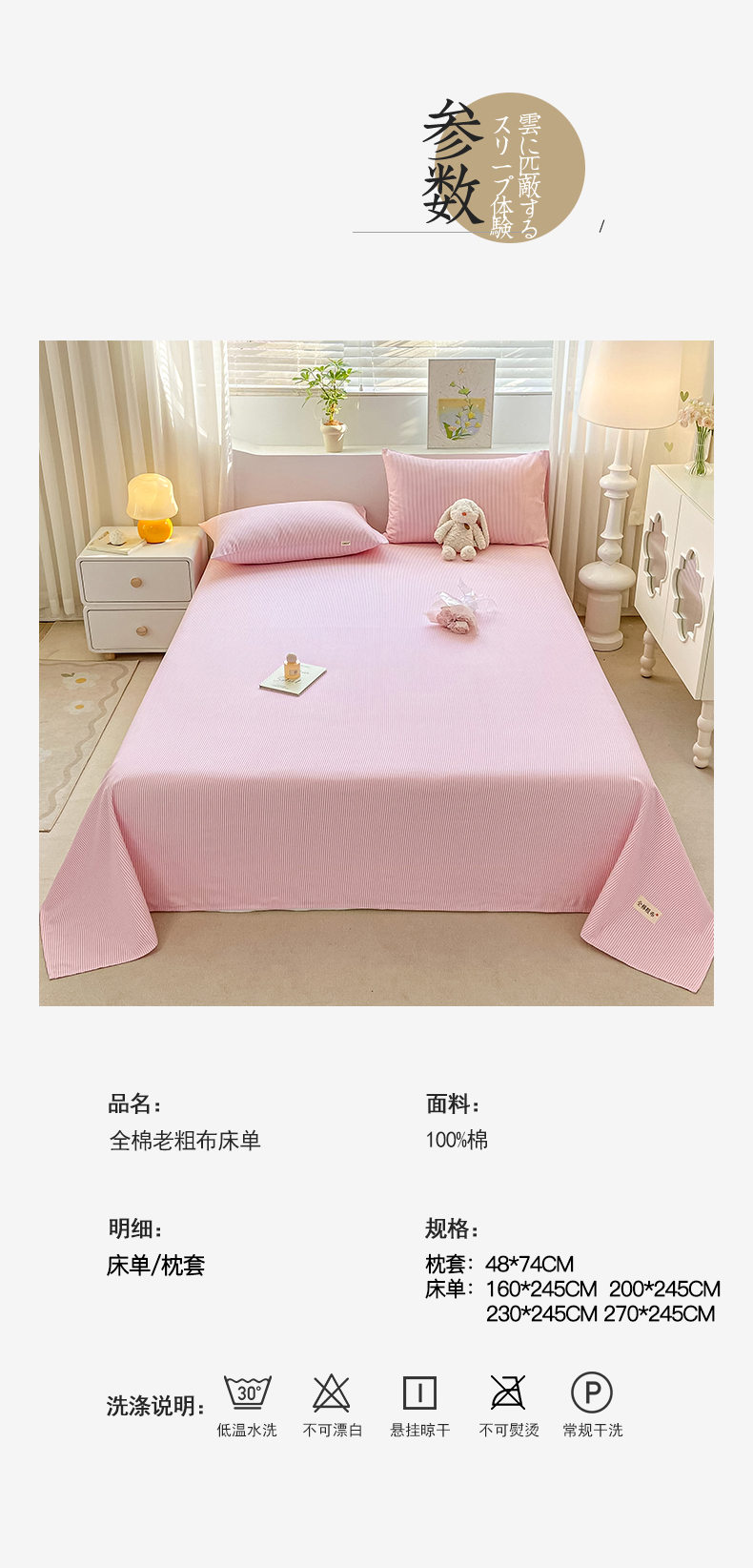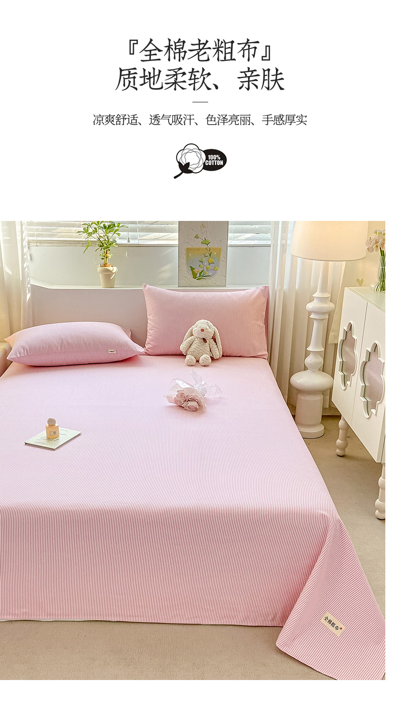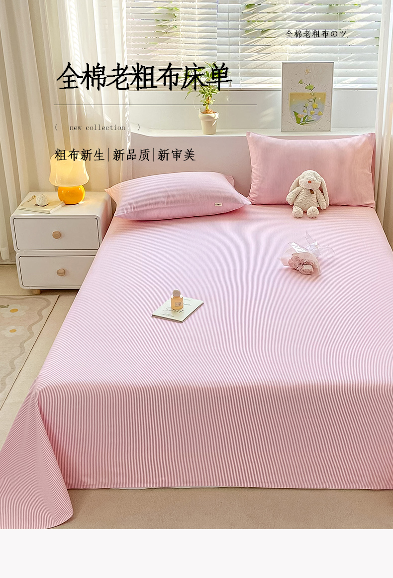 卧趣家纺 2024新品全棉老粗布单品床单床笠系列-单品床单系列 莱卡-粉