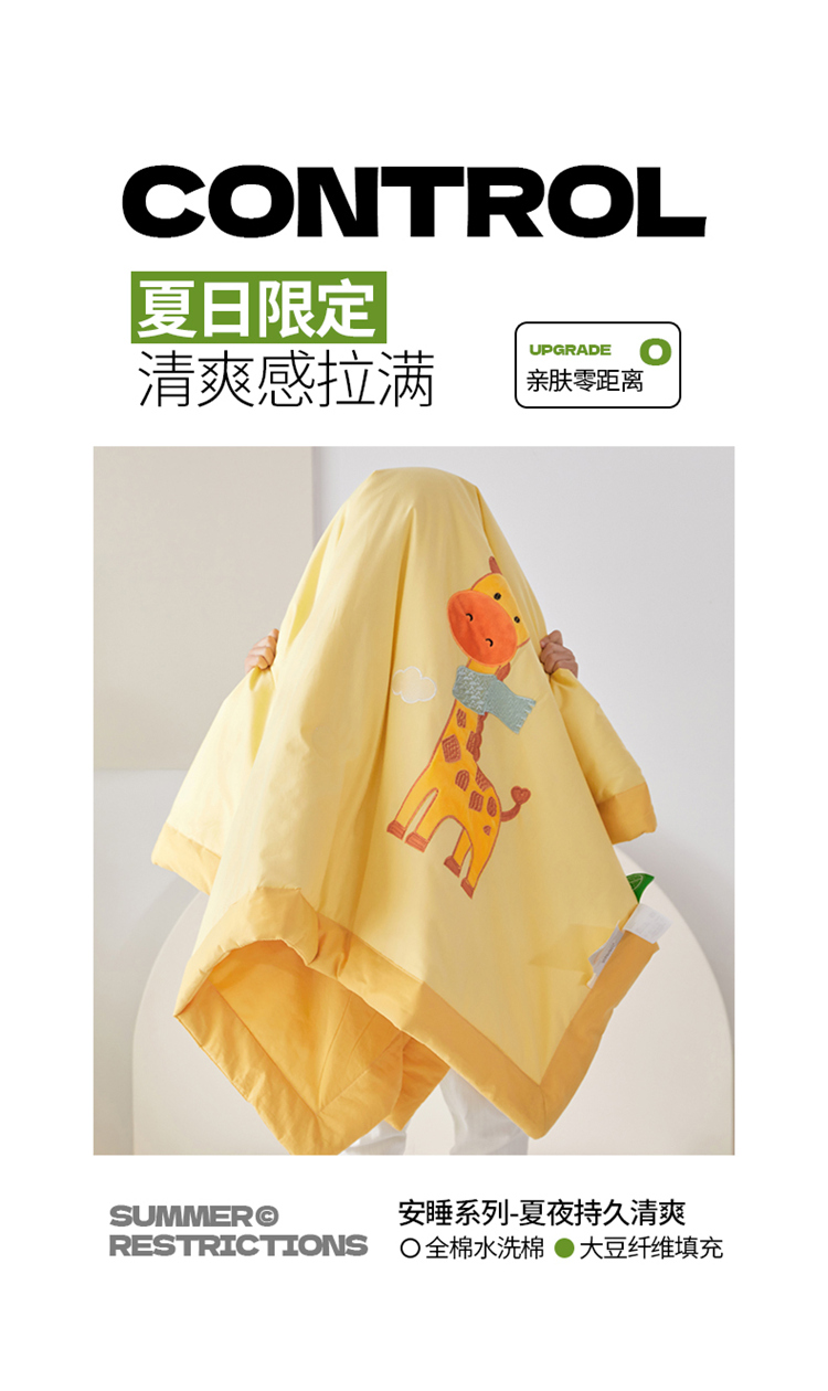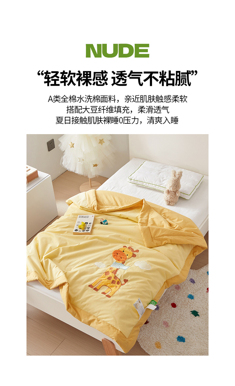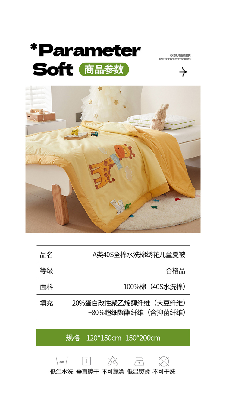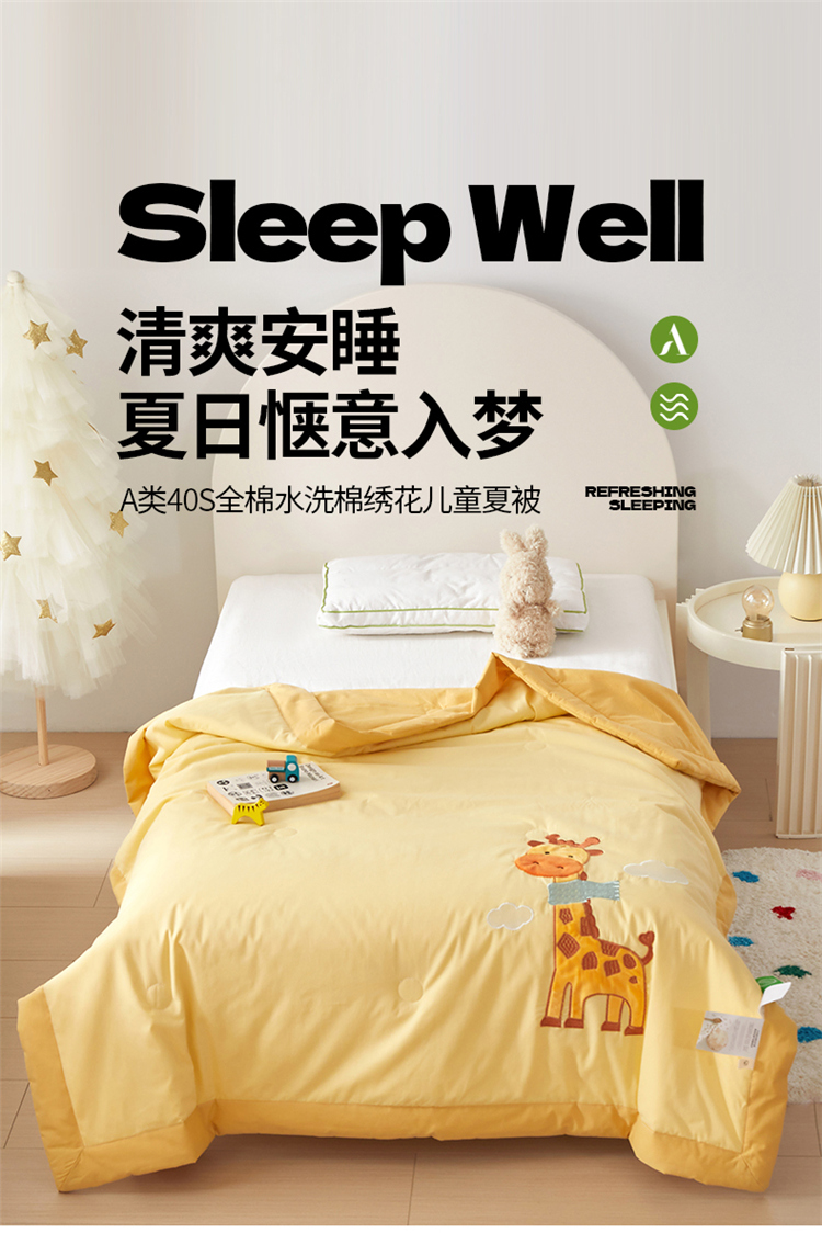 商品名称:荷马之梦 安睡系列——2024新款A类40s全棉水洗棉绣花儿童夏被 长颈鹿