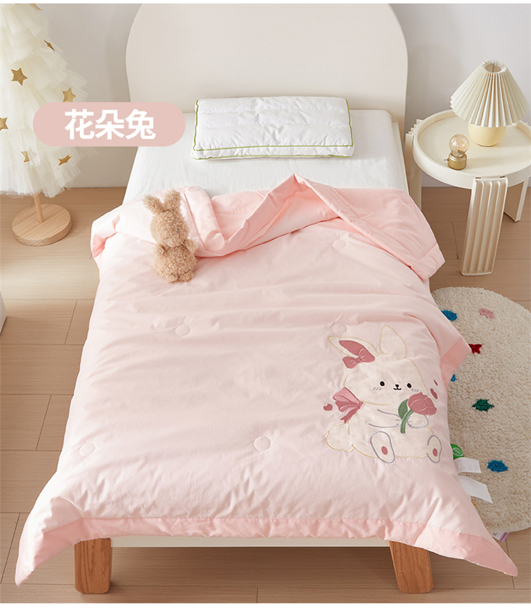(总)荷马之梦 2025新款轻芯系列-A类双层纱纯棉印花贴布绣卡通被子春秋被冬被儿童安抚被,乖小兔,酷小熊,快乐熊猫,音乐小象