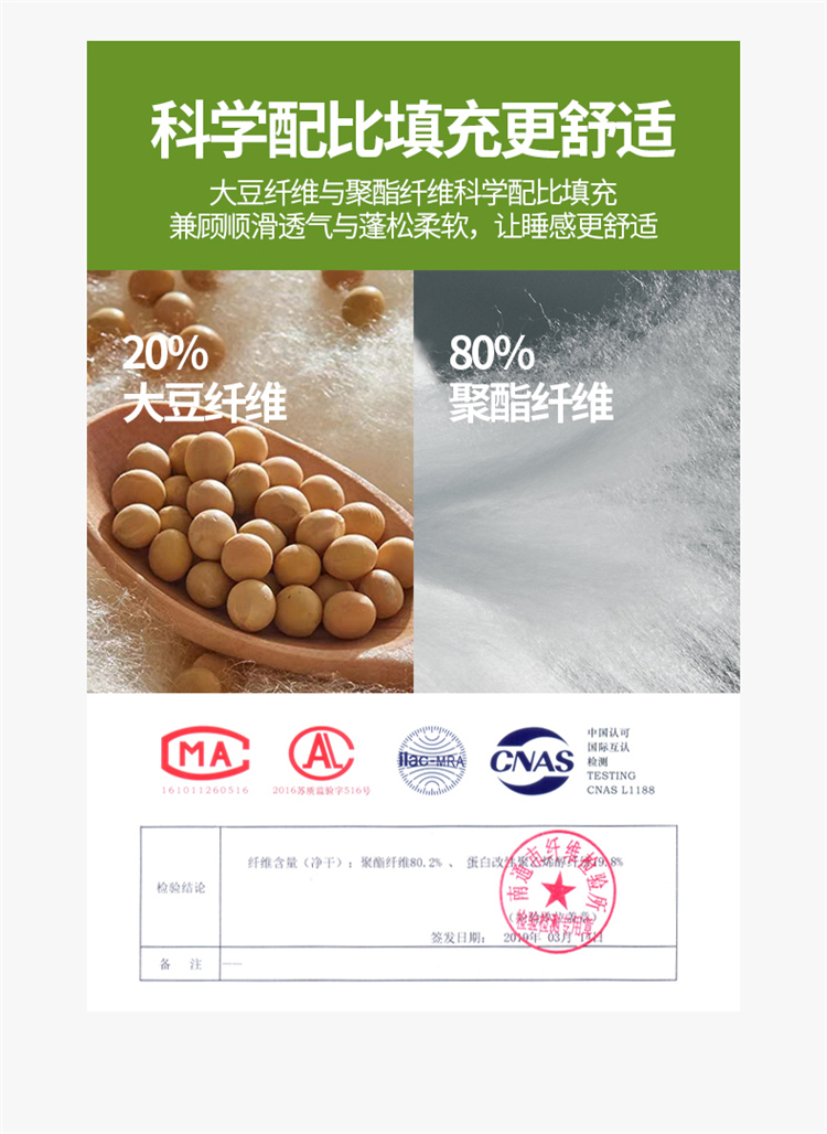 填充纤维种类: 大豆蛋白改性聚酯纤维