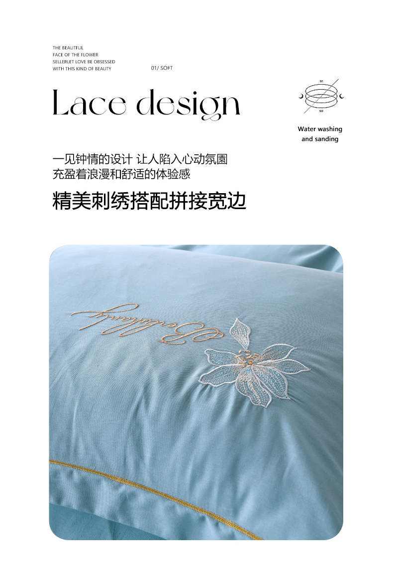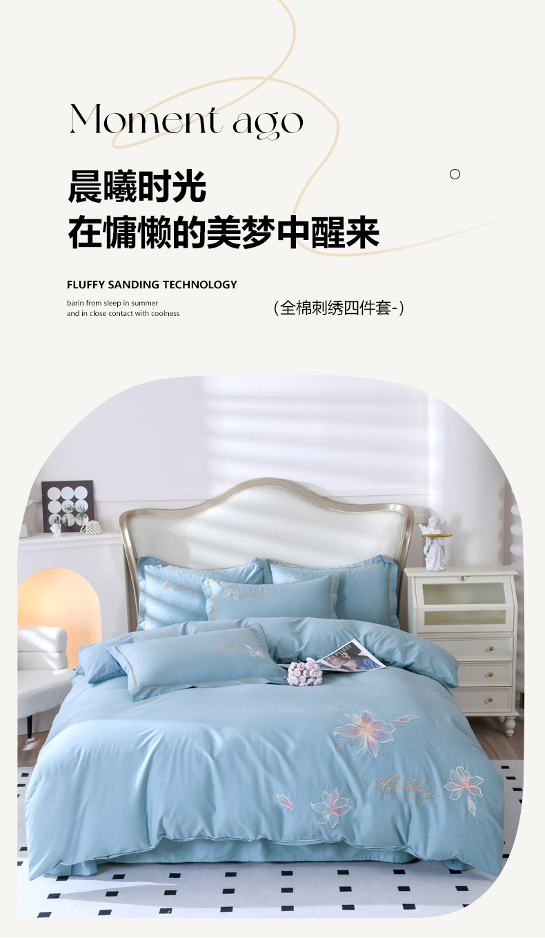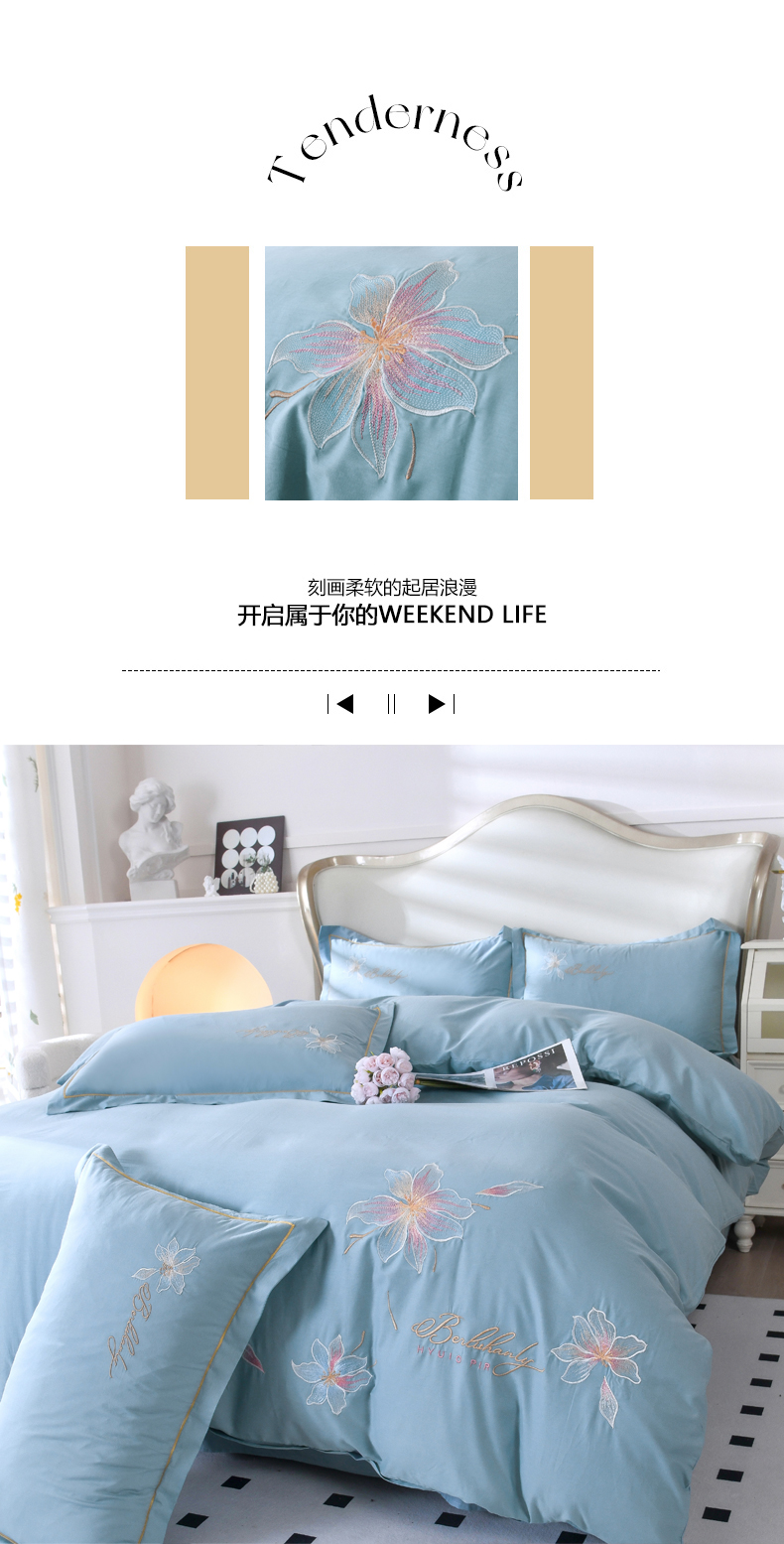 布乐意 2025新款全棉刺绣四件套花蔓系列 全棉-花蔓湖兰