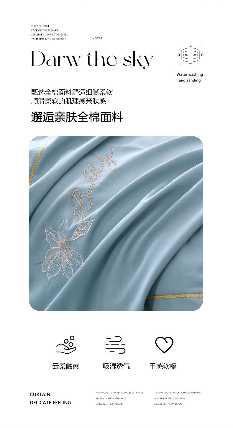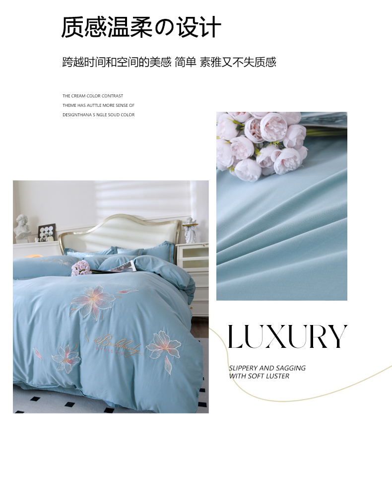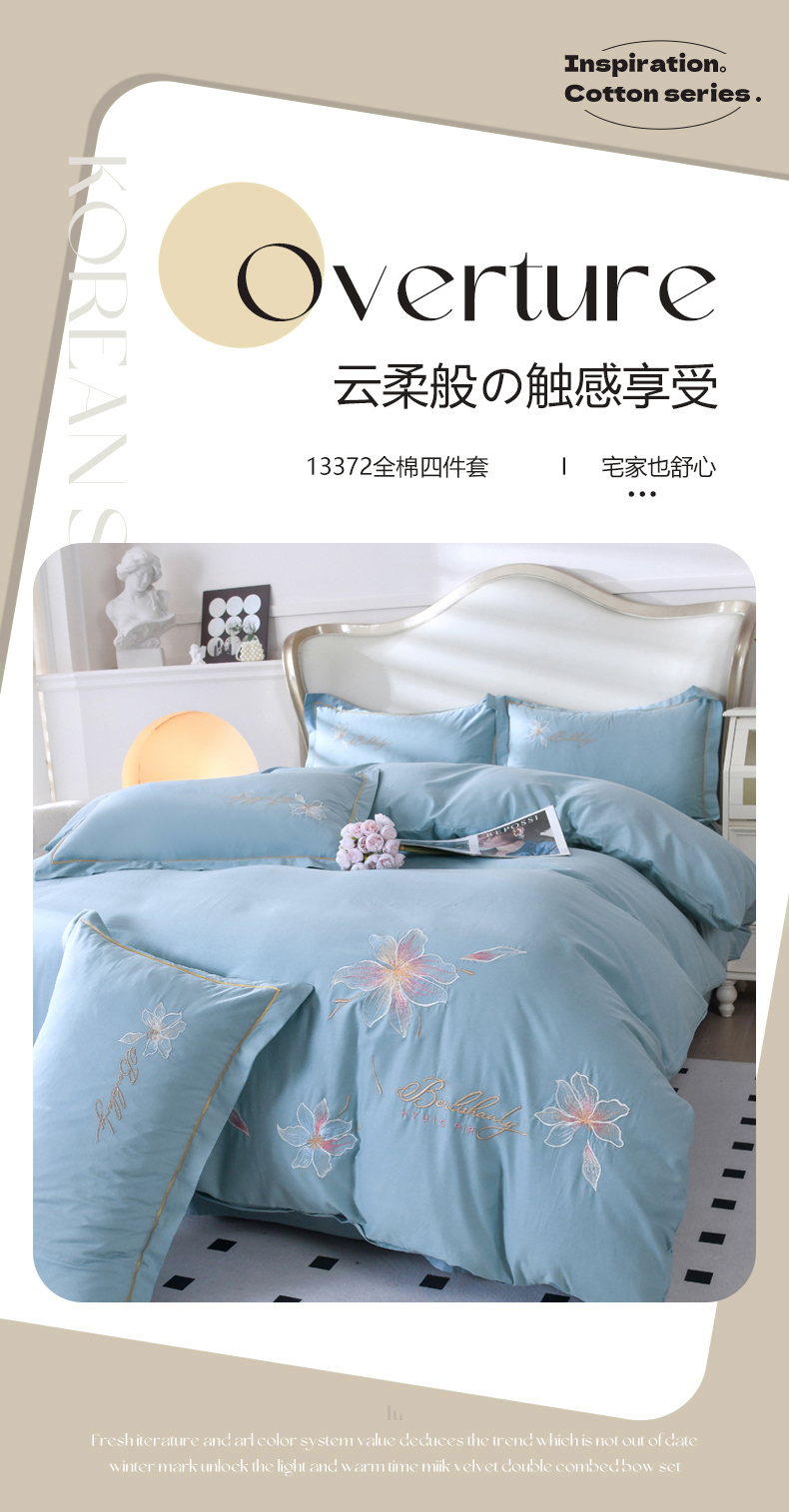 布乐意 2025新款全棉刺绣四件套花蔓系列 全棉-花蔓湖兰